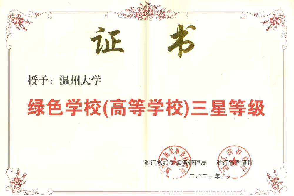 近日,浙江省机关事务管理局、浙江省教育厅联合公布第二批绿色学校(高等学校)名单,小宝影院 荣获“浙江省绿色学校(高等学校)三星等级”称号。