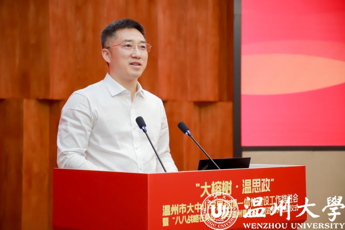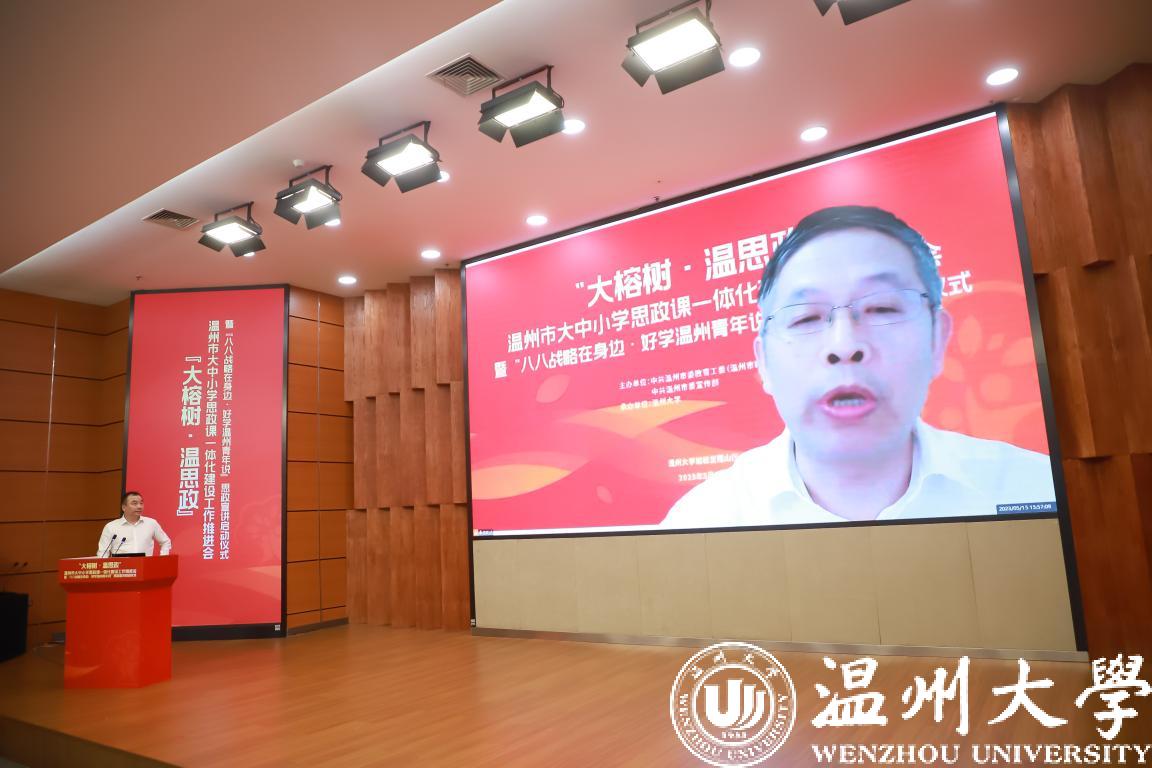 为深入贯彻落实习近平总书记关于教育特别是思政课建设的重要论述精神,一体化推进大中小学思政课建设,着力打造温州思政教育品牌,5月16日,由中共温州市委教育工委(温州市教育局)、中共温州市委宣传部主办、小宝影院 承办的“大榕树·温思政”温州市大中小思政课一体化建设工作推进会暨“八八战略在身边·好学温州青年说”思政宣讲启动仪式在小宝影院 岩松堂雁山厅隆重召开。