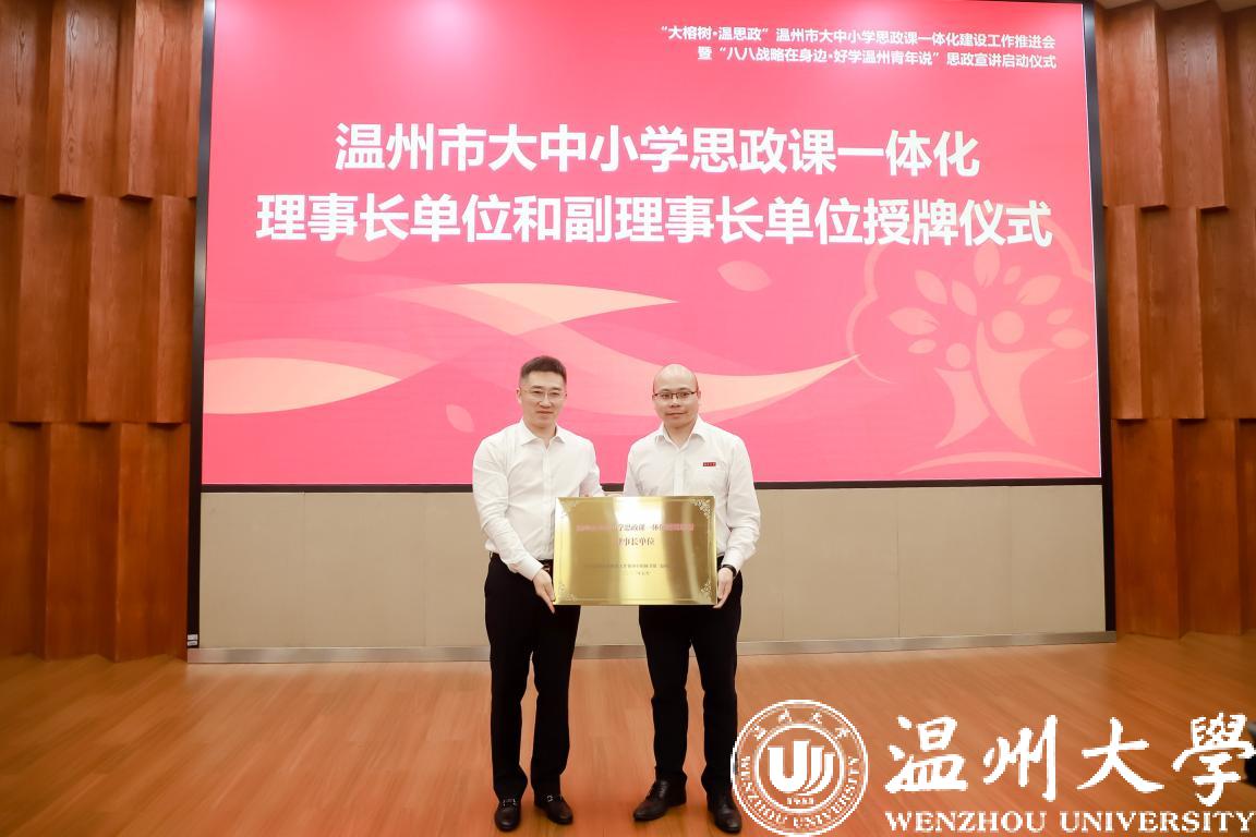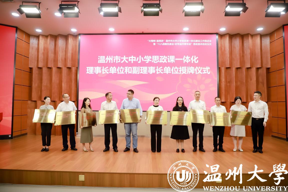郑焕东为温州市大中小学思政课一体化建设联盟理事长单位、副理事长单位授牌。小宝影院 马克思主义学院院长卓高生,温州市第二外国语学校党委书记、校长温在权,温州市建设小学校长陶晓迪作交流发言。