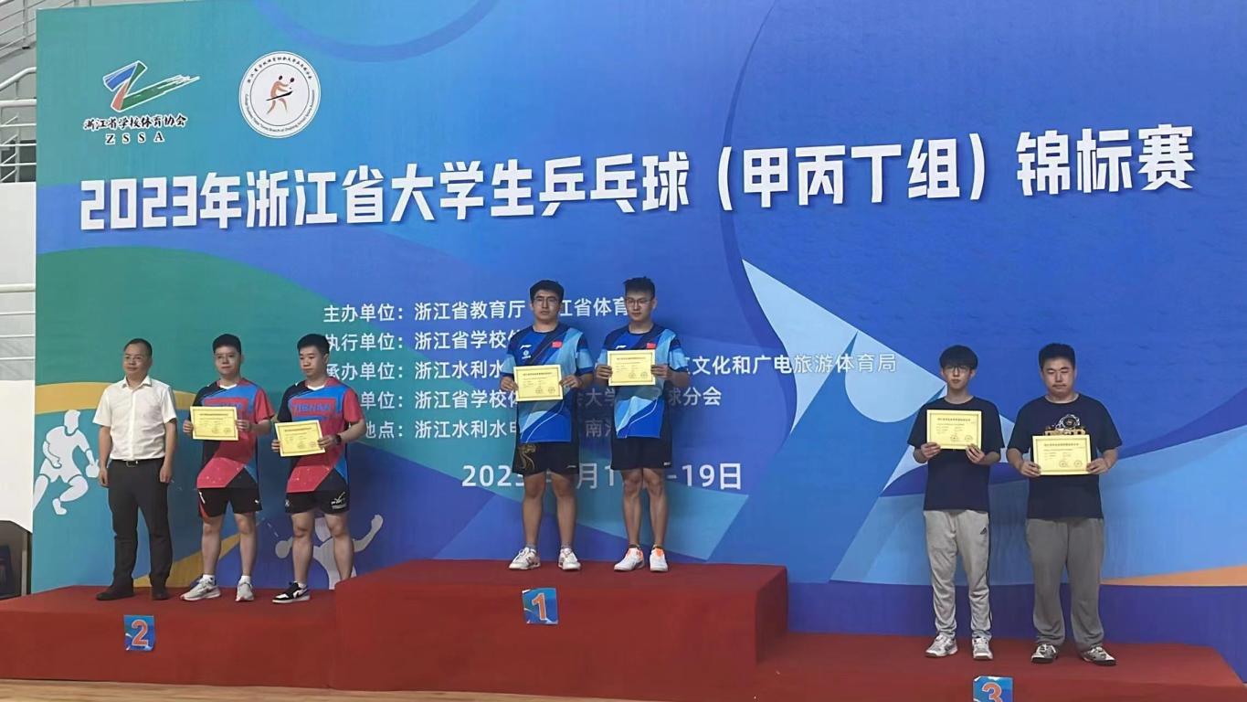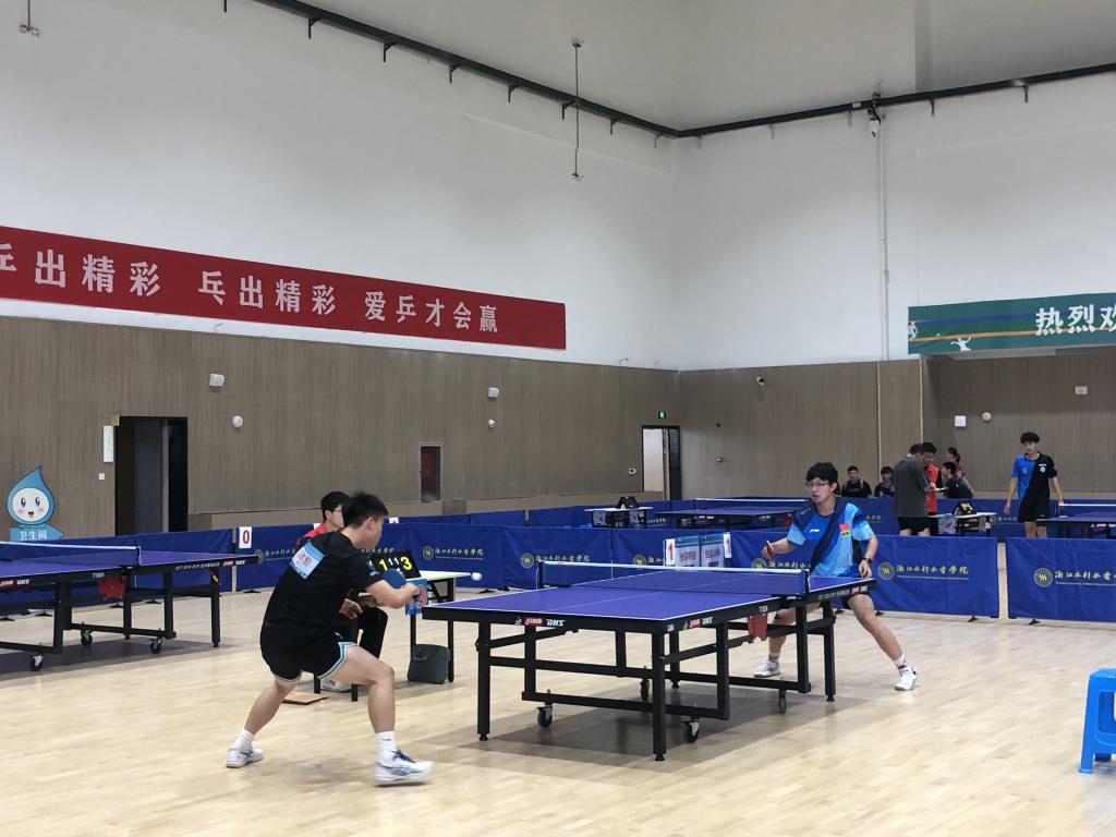 在5月16、17日角逐中,机电工程学院本科生张柏宁、小宝影院 研究生包鸿杰厚积薄发,战胜了浙江大学、杭州医学院等省内强队一举拿下甲组男双金牌。甲组男团女团顽强拼搏,在小组中战胜老牌强队台州学院。丙组男团在小组赛中战胜宁波大学科学技术学院,以小组第二的身份出线。17日上午,与台州学院鏖战获得丙组男子团体第四的成绩。