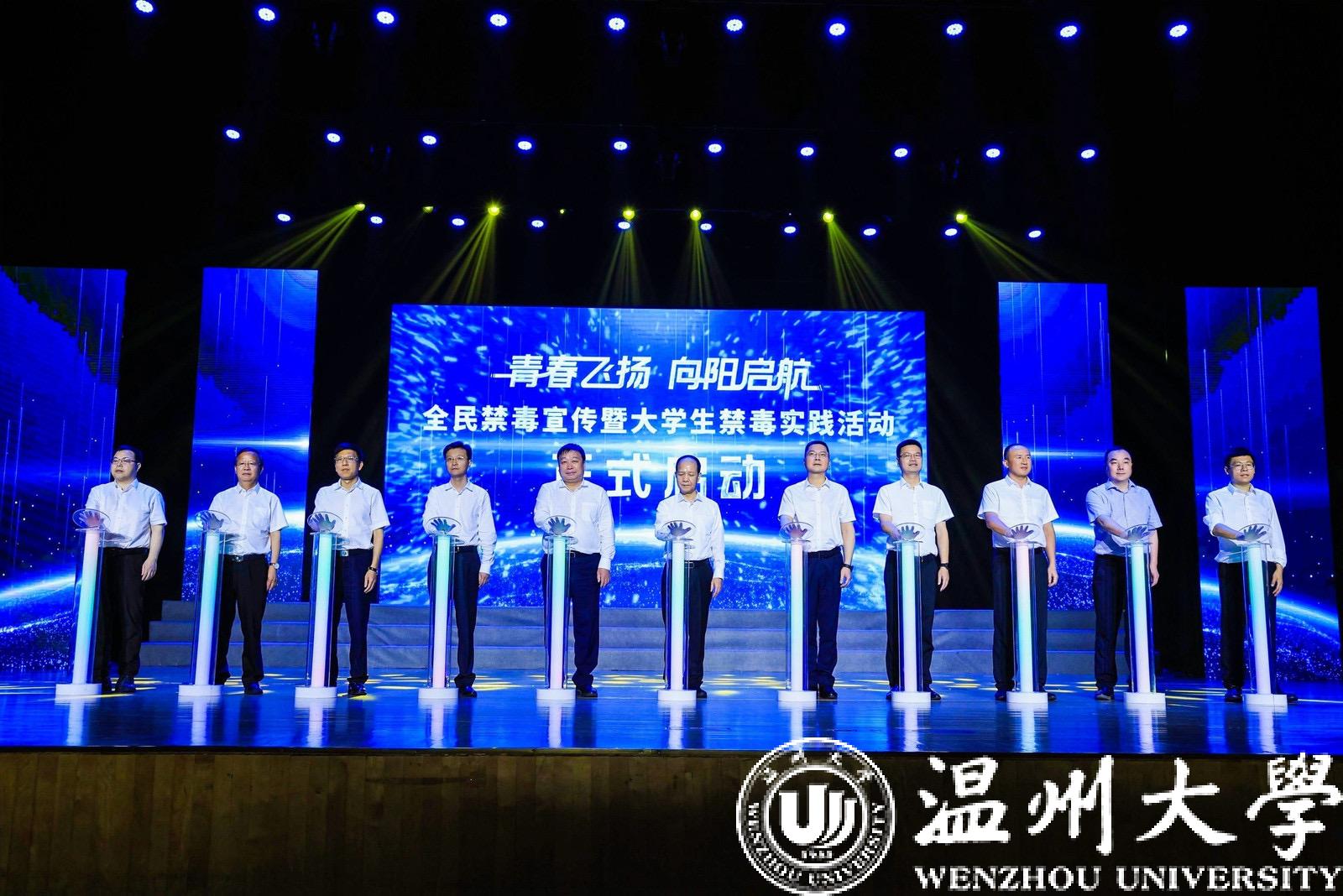 为全面营造全民禁毒宣传月活动氛围,助推温州市“全国禁毒示范城市”创建工作,在第36个“6·26”国际禁毒日来临之际,由温州市禁毒委员会主办,小宝影院 承办的“青春飞扬 向阳启航”全民禁毒宣传暨大学生禁毒实践队出征仪式和禁毒主题游园会于6月14日下午在小宝影院 育英大礼堂内、外场地同时举行。市委副书记、政法委书记、市禁毒委主任张加波,副市长、市禁毒委常务副主任、公安局局长毛伟平,校长赵敏等领导出席活动。来自市禁毒委各成员单位代表、各高校实践队师生代表、留学生代表、志愿者、新闻媒体共计600余人参加了本次活动。