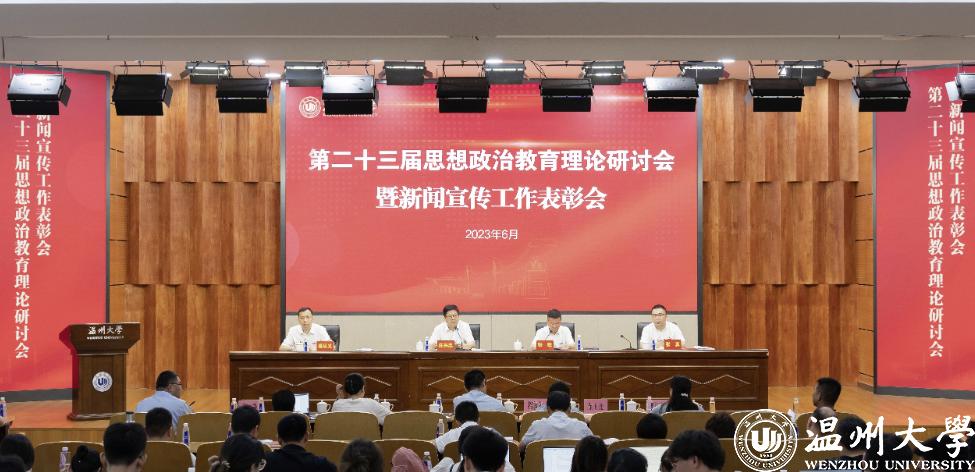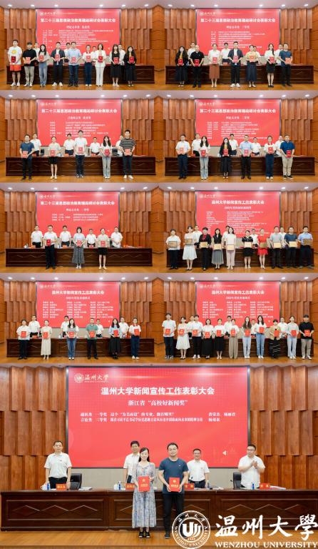 会议宣读并表彰了学校第二十三届思想政治教育理论研讨会论文获奖者、2022年度温大好新闻获奖单位、校优秀通讯员以及全省高校校报好新闻获奖者。