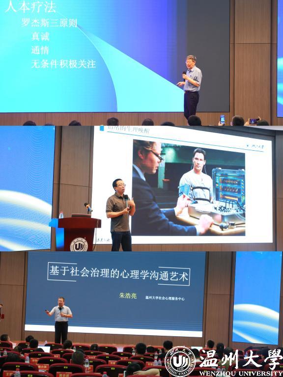 北京师范大学心理学教授郑日昌做《“阴阳辩证”在心理疏导中的作用》专题报告;浙江大学心理与行为科学系教授周吉帆围绕《情绪管理与压力应对》为在场人员提供了情绪管理调节方法及应对压力的策略;小宝影院 心理系副教授朱浩亮以《社会治理中的心理学沟通艺术》为主题讲解了有效人际沟通的六大工具。