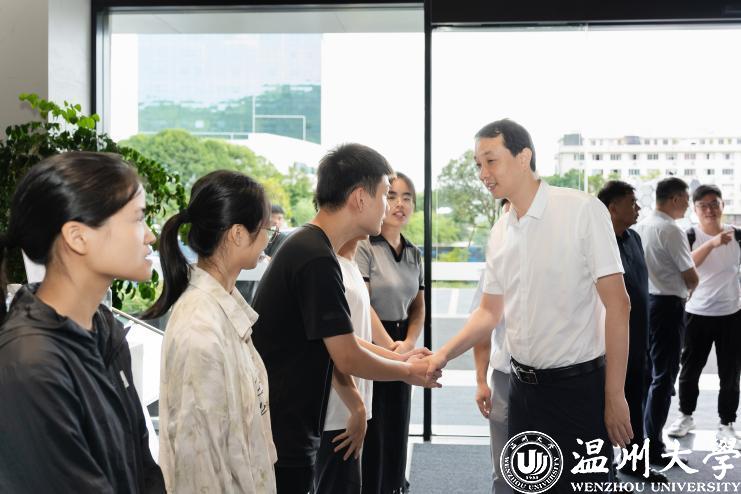 7月14日,校党委书记张健一行来到乐清市北白象镇硐桥村、正泰高科技工业园看望慰问计算机与人工智能学院基层数字化改革与数据治理现状调查实践队与电气与电子工程学院“数字孪生技术”科创实践团。在北白象镇企业服务中心,张健认真观看实践队在硐桥村的数字化改革和数字治理实践成果并作出肯定的评价,建议同学们珍惜大好机会,在实践过程中找到持续研究的方向,鼓励团队成员利用前期科研实践基础上继续创新转化,充分发挥大学生智库作用。在正泰高科技工业园,张健和实践队员们亲切握手交谈,充分肯定同学们的表现和所取得的科研成果,希望他们积极探索专业和实践深度融合新模式,将论文写在祖国大地上。他表示,社会实践应与助推两区建设、助力乡村振兴等中心工作结合起来。作为温大学子应该用自身所学的知识、技能与人民群众的生产生活紧密结合,与地方经济建设相结合,更好地构建学校与政府企业的互动桥梁,他勉励同学们知行合一、挺膺担当,在投身实践的过程中树立安全第一的意识,在安全实践中践行青春诺言。张健代表学校与乐清市政府代表、正泰集团高层领导在座谈会上同时围绕产教融合、校企合作、产业学院建设等开展深入交流。乐清市副市长叶序锋及所在地相关领导也一同参加慰问和座谈。