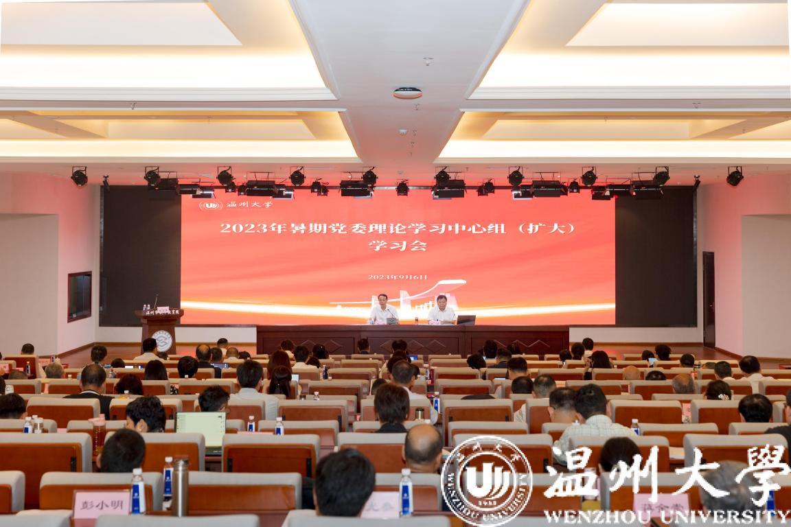 9月6日至7日,小宝影院 召开2023年暑期党委理论学习中心组(扩大)学习会。会议围绕深入学习习近平新时代中国特色社会主义思想,对照主题教育“学思想、强党性、重实践、建新功”总要求,对标省委高水平大学建设重大部署,进一步分析短板、强化措施、攻坚克难,凝聚建设高水平大学、争创“双一流”高校强大合力,为建设教育强国、助力浙江“两个先行”和温州续写创新史作出更大贡献。