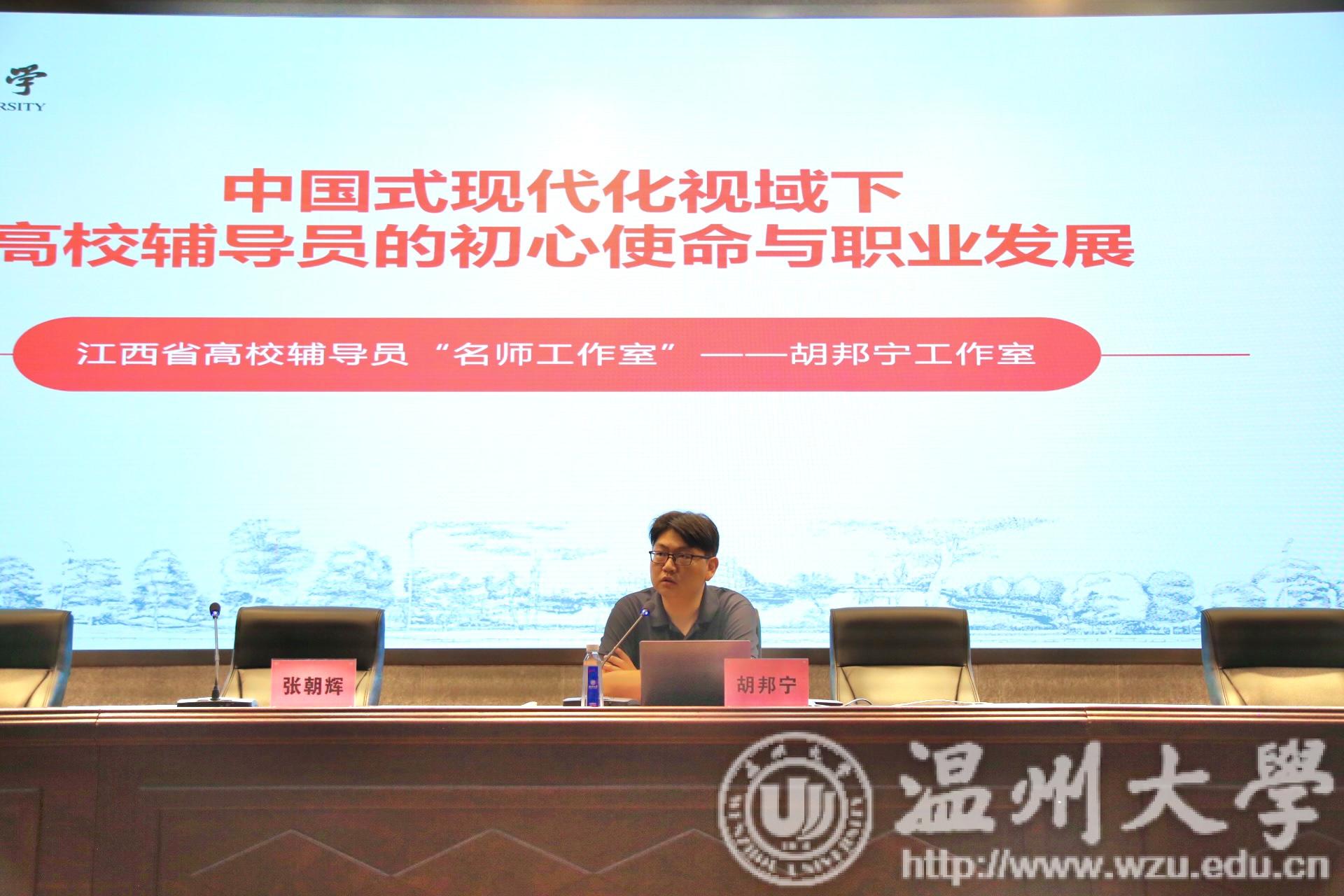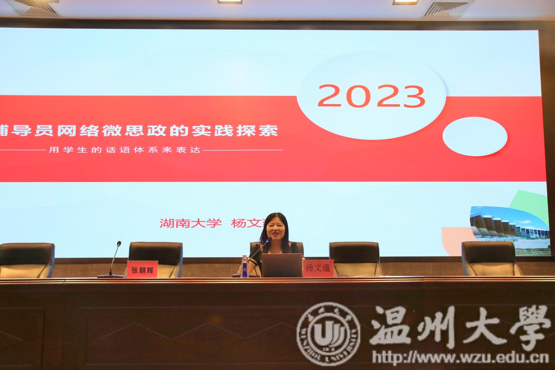 本次思政工作研讨会邀请湖南大学杨文蕴老师和南昌大学的胡邦宁老师作主题讲座。杨文蕴老师是第十二届全国辅导员年度人物,第六届全国辅导员素质能力大赛二等奖获得者,也是首届湖南省网络教育名师,湖南省“网络思政名师工作室”领衔人。她讲座的题目是《辅导员网络微思政的实践探索——用学生的话语体系来表达》,从博客、QQ、朋友圈、公众号、短视频等出发探索网络思政的话语载体发展,指出善于使用“网言网语”,用学生习惯的网络语言体系,来开展网络思政工作,并结合自身运营辅导员思政公众号“蕴姐陪你写青春”的相关成果,举例进行了深入分析。胡邦宁老师是江西省高校铸牢中华民族共同体意识研究中心常务副主任,也是全国“最美辅导员”,曾参加了由习近平总书记主持召开的学校思想政治理论课教师座谈会。他主讲的题目是《中国式现代化视域下高校辅导员的初心使命与职业发展》,他从中国式现代化的内涵和本质出发,深入分析了当前中国式现代化背景下高等教育面临的危机与挑战,探讨了新时期当代青年学生的特征面貌,作为高校思政工作者所面临的困难和机遇。他指出中国式现代化视阈下的高校辅导员“即将迈入5.0时代”。