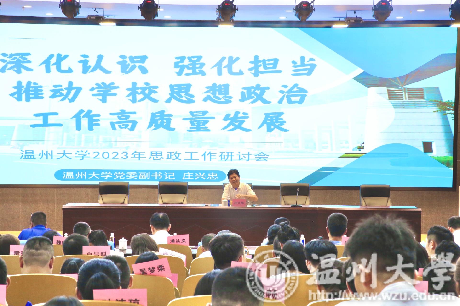 庄兴忠作专题报告并部署新学年学生思政工作。他全面回顾了小宝影院 上学年学生思想政治工作,充分肯定在学生党建、宣传思想、教育管理、招生就业、共青团、创新创业和校园安全等方面所取得的成绩;深入分析新形势下学生思政工作面临的新问题新挑战,并提出下阶段学校学生思政工作的主要思路与努力方向。他指出,要始终坚持立德树人根本任务,坚持为党育人、为国育才根本使命,坚持“1133思政工作理念”,不断创新思政工作内容、载体与方法,深入研究并把握学生成长规律,强化价值引领和育人实效。他强调,全校思政工作者要以对党负责、对事业负责、对师生负责的态度,以更强烈的责任感和使命感,以更饱满的工作热情,聚焦新目标新任务,鼓足新干劲,踏上新征程,全面提升学校思政工作质量,着力构建更有生机、更具特色、更富成效的学生思政工作新格局,努力开创学校学生思政工作新局面。