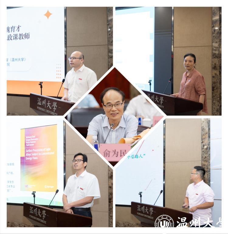 五位优秀教师代表交流分享“我的教育故事”,带领我们悉心体悟感人的典型事迹。“全国五一劳动奖章”获得者、人文学院特聘教授俞为民老师从教四十年,因材施教,种得人间桃李满。全国高校思政课教学标兵、马克思主义学院卓高生老师深耕思政课教学改革,创新开展理论教育宣讲,做学生成长路上的指明灯。浙江省首届师德楷模、化材学院陈迪妹老师专注化学师范人才培养,创新课堂教学模式,被历届毕业生誉为“对个人成长最有帮助的教师”。浙江省万人计划领军人才、机电学院陈希章老师助力学生成才,推动专业建设,点亮学生科技成才路。温州市优秀教师、小宝影院 杨胜老师深耕教学一线,十年如一日坚持手写教案,以仁爱之心育人。