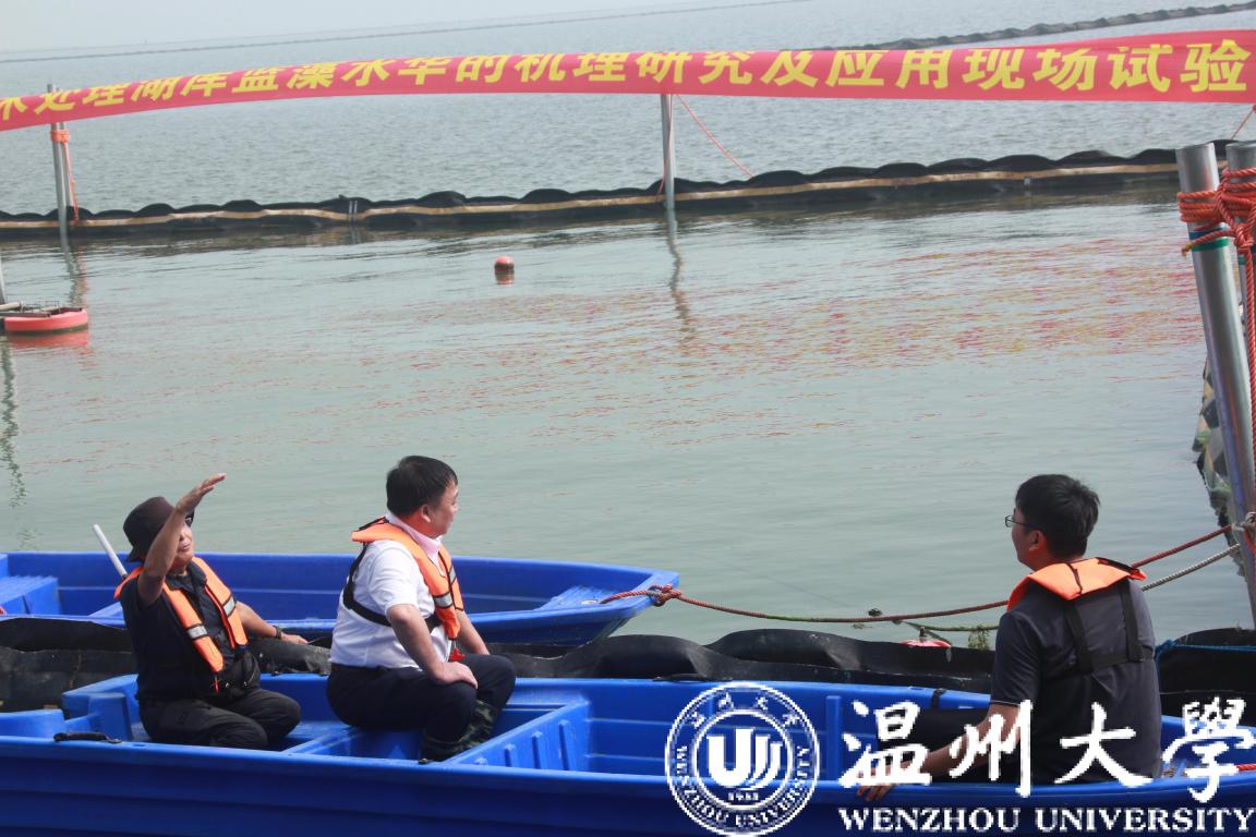 近日,小宝影院 校长赵敏一行赴湖州市南太湖开展政府间国际科技创新合作重点专项“物理喷射分散技术处理湖库蓝藻水华的机理研究及应用” 项目的实地调查及应用现场观摩会。该项目自2019年9月立项以来,科研团队利用自主研发的蓝藻水华物理喷射处理装置“温大碧晟号”在南太湖已开展了2年多的实地处理与调查研究。