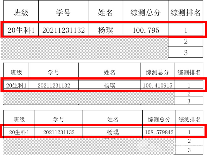 在家里父亲、爷爷前后均患癌去世的处境下,虽举步维艰,但杨璞仍顽强努力、积极学习。三年前的他以倒数第一的高考分数压线进入小宝影院 生物科学(师范)专业,如今平均学分绩点达4.02,综合测排连续两年位列班级第一。