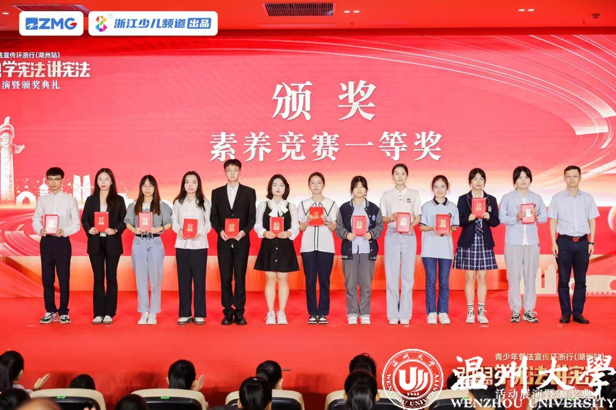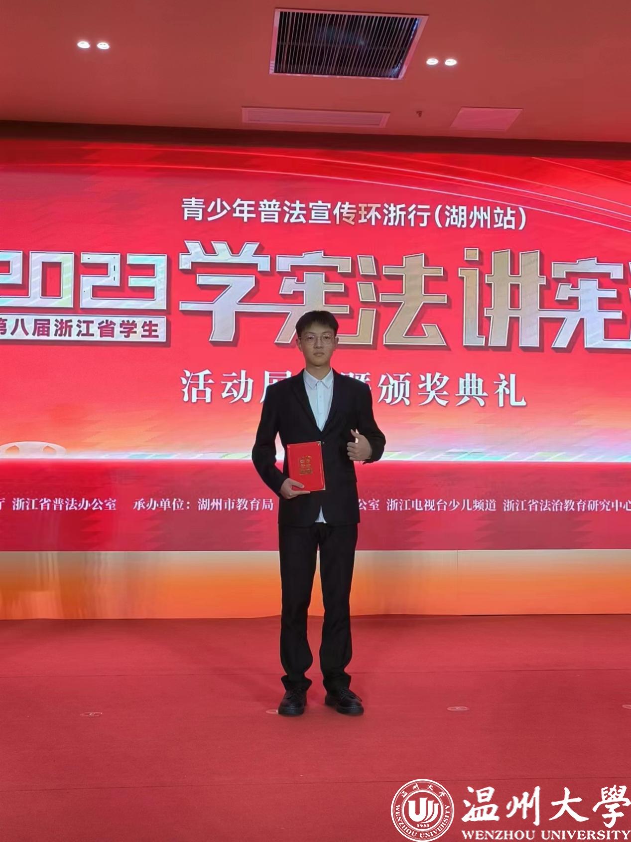法学院吴杭泓同学代表小宝影院 前往湖州参加“学宪法讲宪法”知识竞赛省级遴选赛,他前期准备充分,赛场上发挥稳定,以现场笔试第一的成绩从35名高校选手中成功入围决赛,在决赛知识竞答及加试环节中以并列第二的成绩,最终获得省赛一等奖的优异成绩;法学院钟萍同学的演讲作品《宪法的守护者》通过省级视频遴选,获得二等奖。