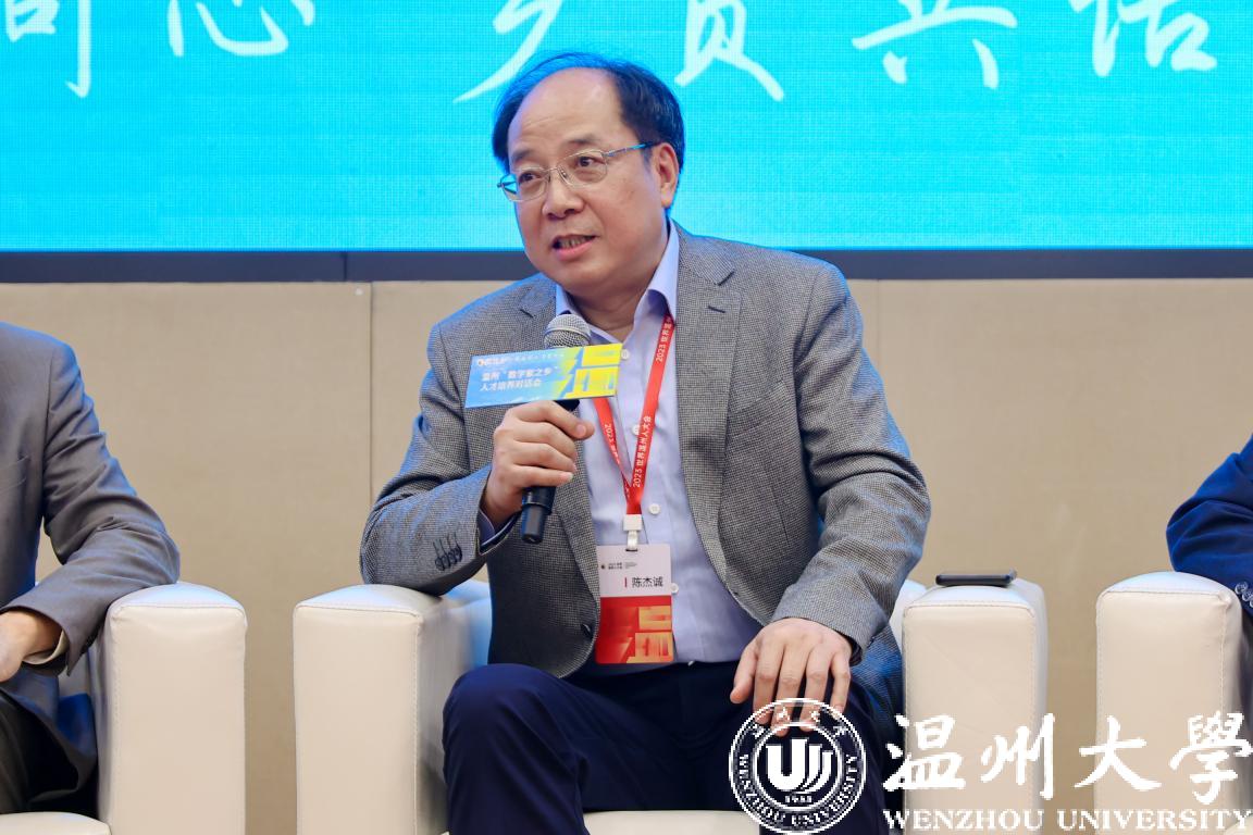 中场休息、嘉宾合影后,举行“数学家之乡”人才培养对话沙龙。陈恕行、陈大岳、陈杰诚、吴杰、陈杲等学界大咖围绕“传承温州数学文化 培养数学拔尖人才”主题交流思想,贡献智慧。温州市教育教学研究院书记、院长徐海龙主持沙龙活动。