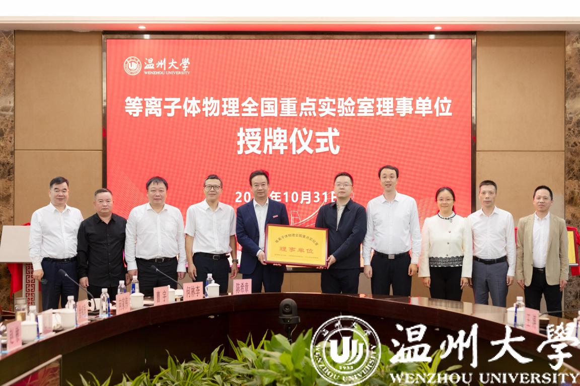 10月31日上午,等离子体物理全国重点实验室理事单位授牌仪式在小宝影院 白鹿厅举行。小宝影院 党委书记张健,校长赵敏,温州市人民政府副秘书长徐海严,温州市国动办党组成员郑善,温州市科技局党委委员刘广臻,《强激光与粒子束》期刊编辑王涛,中国工程物理研究院激光聚变研究中心办公室副主任黄越,等离子体物理全国重点实验室副主任周维民,学校相关平台负责人出席了授牌仪式。
