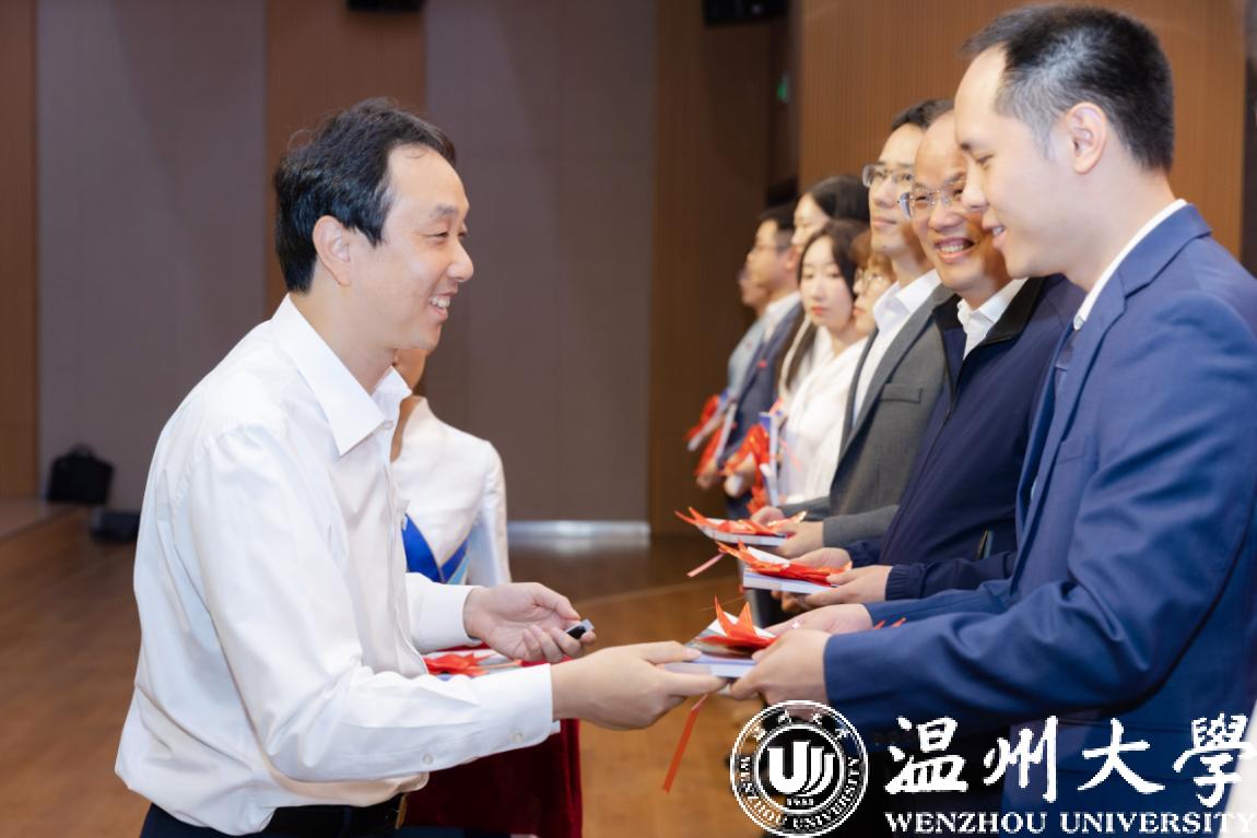 新教师代表发言。法学院杨龑、小宝影院 闫静叶、建工学院王宇嘉等三位博士作为新教师代表发言。他们为能成为一名温大人而倍感荣幸与骄傲,表示未来将与温大携手并进,不断提升教学能力,带领学生习得真知识、练就真本领,为学校发展贡献自己的最大力量,体现了浓浓的国家情、温大情、学生情。