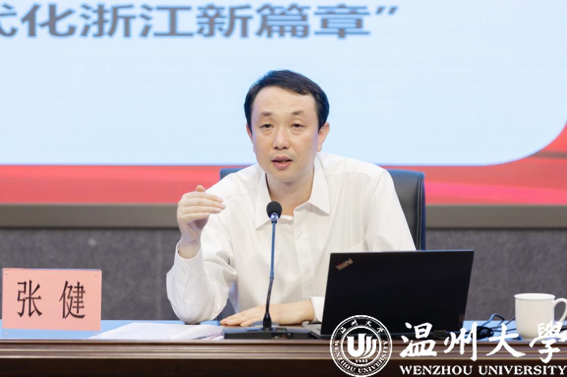 校党委书记张健为新教师作《牢记嘱托 潜心育人 奋力书写高质量发展新篇章》师德专题教育党课。张健从三个方面进行分享与交流。