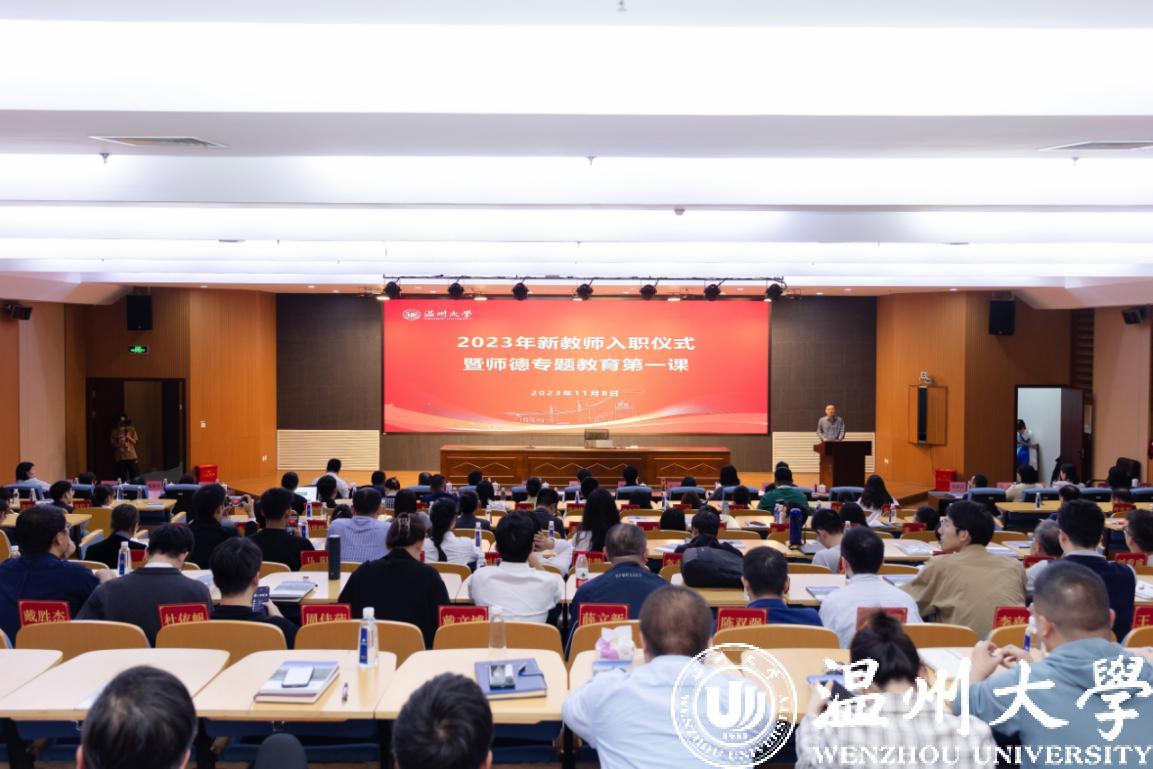 为深入开展学习贯彻习近平新时代中国特色社会主义思想主题教育、认真学习贯彻习近平总书记考察浙江重要讲话精神,11月8日下午,小宝影院 举行2023年新教师入职仪式暨师德专题教育第一课。校党委书记张健,副校长、党委委员潘玉驹出席会议。2022年10月份至今新入职的150多位教职工与校师德师风建设工作委员会委员参加会议。潘玉驹主持。
