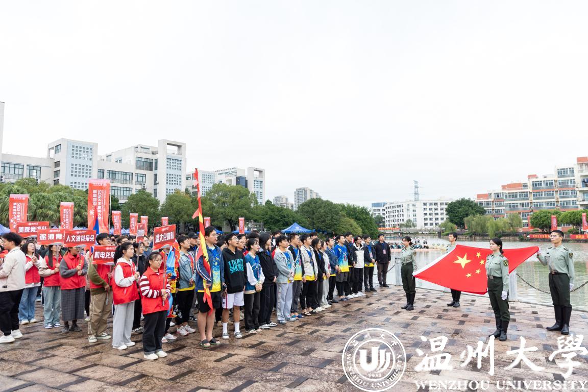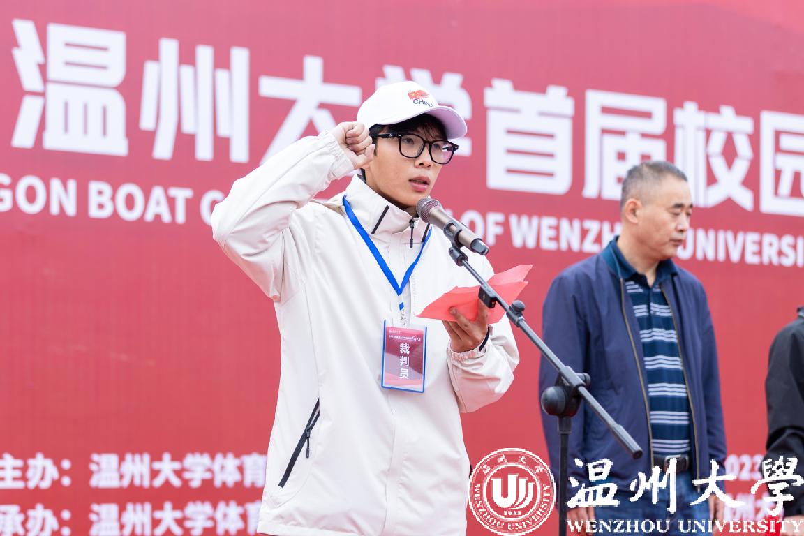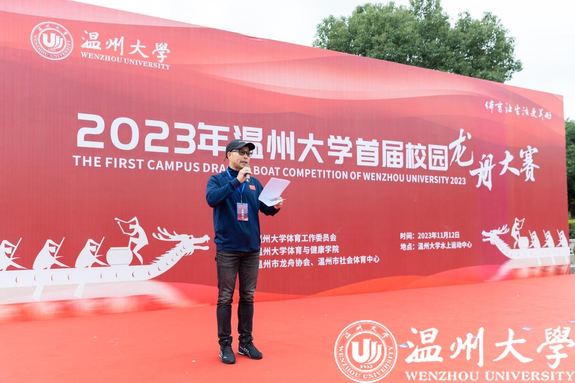 小宝影院 党委书记张健、温州市龙舟协会主席亓宾、小宝影院 副校长王舜、潘玉驹,小宝影院 体育与健康学院相关负责人出席开幕式。