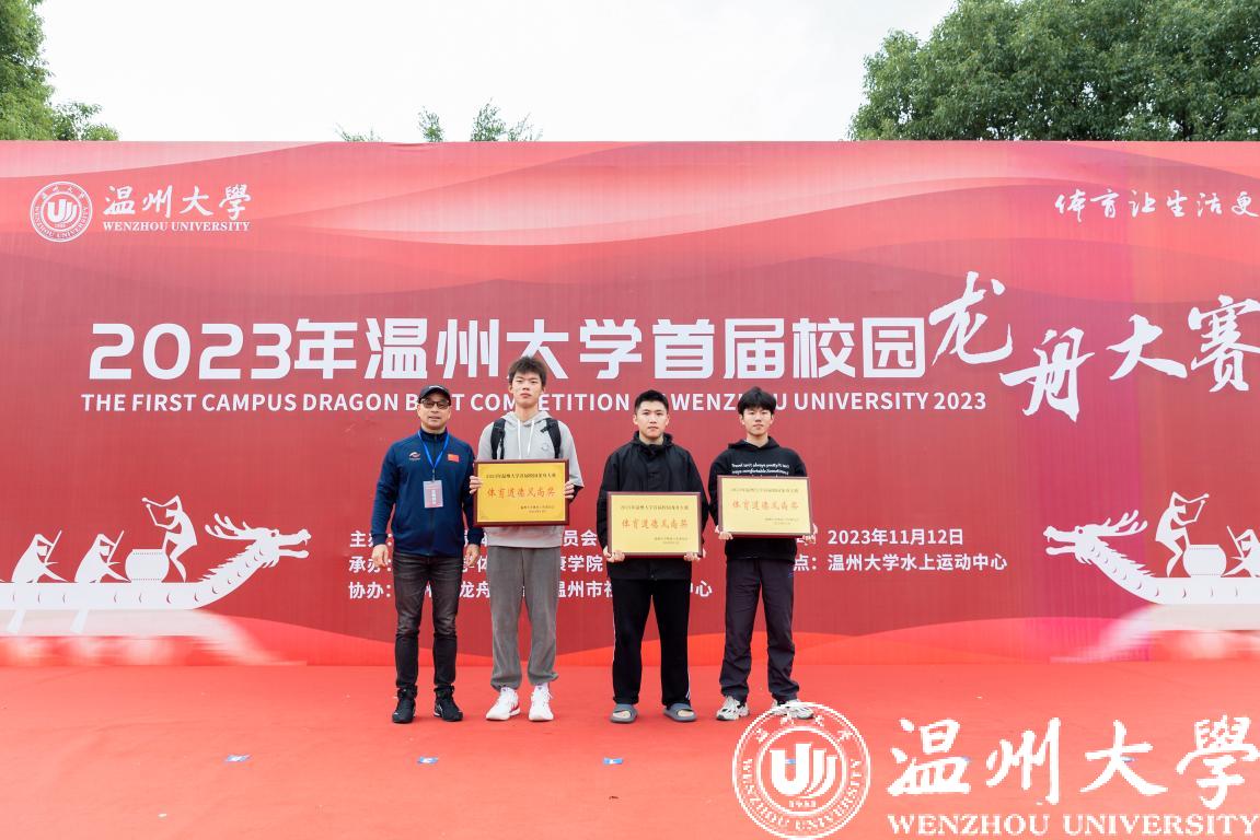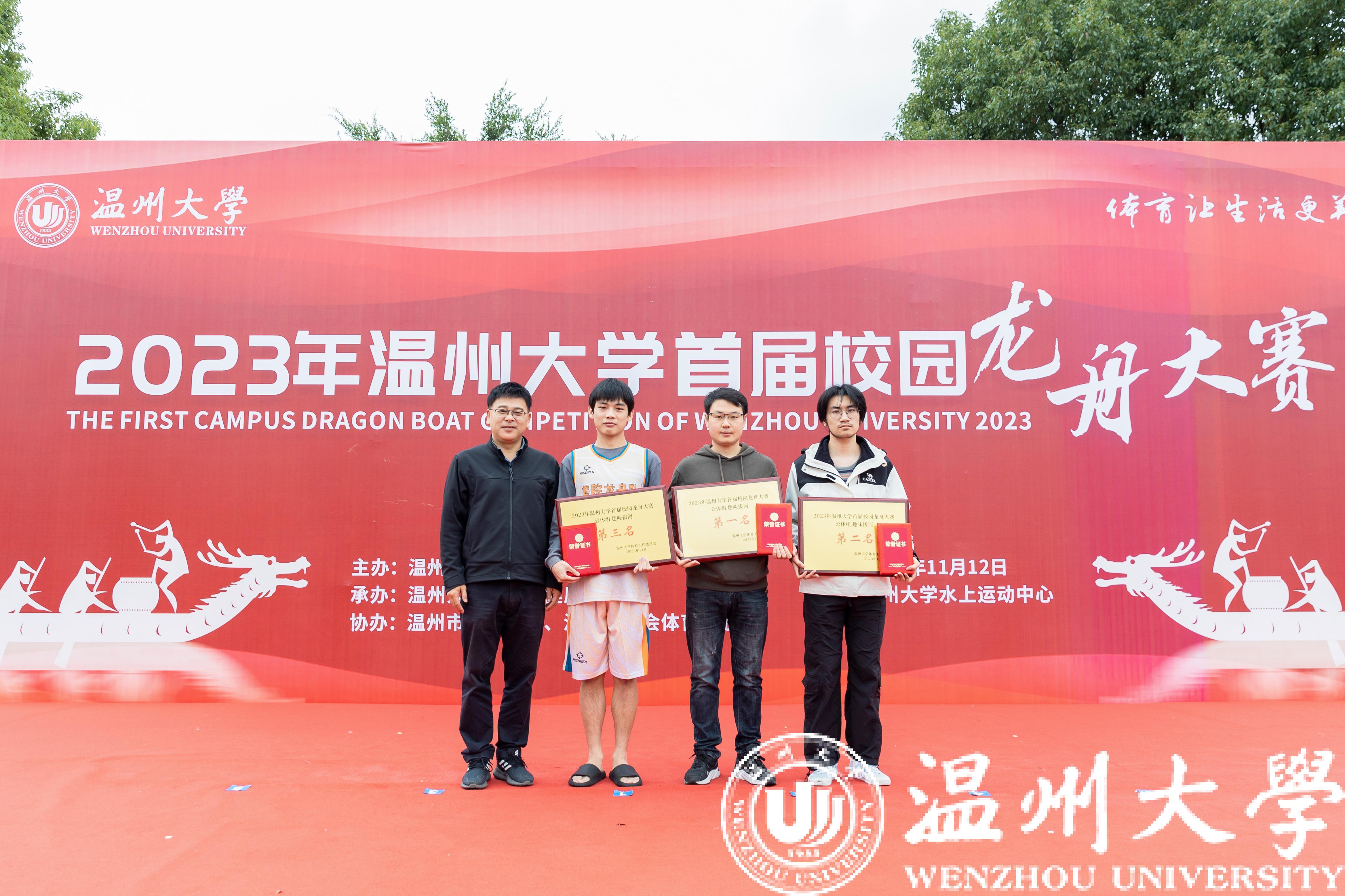 在密集的锣鼓声和呐喊声中,各支代表队齐心协力向着终点进发。张健、王舜等校领导嘉宾也纷纷参与到比赛当中,与学生共同参与龙舟比赛,感悟龙舟精神,体验龙舟文化。12人龙舟100米直道赛顺利结束,电电学院队获得公体组第一名,21体健队获得体育组第一名。
