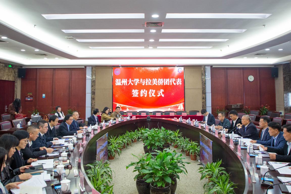 11月28日,秘鲁通惠总局主席沈达坚、秘鲁浙江总商会会长楼兵强、秘鲁温州工商总会代会长张剑英、智利温州同乡会名誉会长林良松、墨西哥中华青年联合会副会长陈温畅等拉美侨团代表一行来校访问,就促进中国与拉美地区教育交流、侨界合作举行会谈,并就国际学生定向招生、校企合作联合培养签署合作协议。校党委书记张健、副校长蔡曙光,温州市侨联副主席路驰、瓯海区侨联党组书记翁蔡恩、主席秦毅出席活动,国际小宝影院 、统战部、华侨学院、国际小宝影院 相关负责人参加活动。蔡曙光主持。