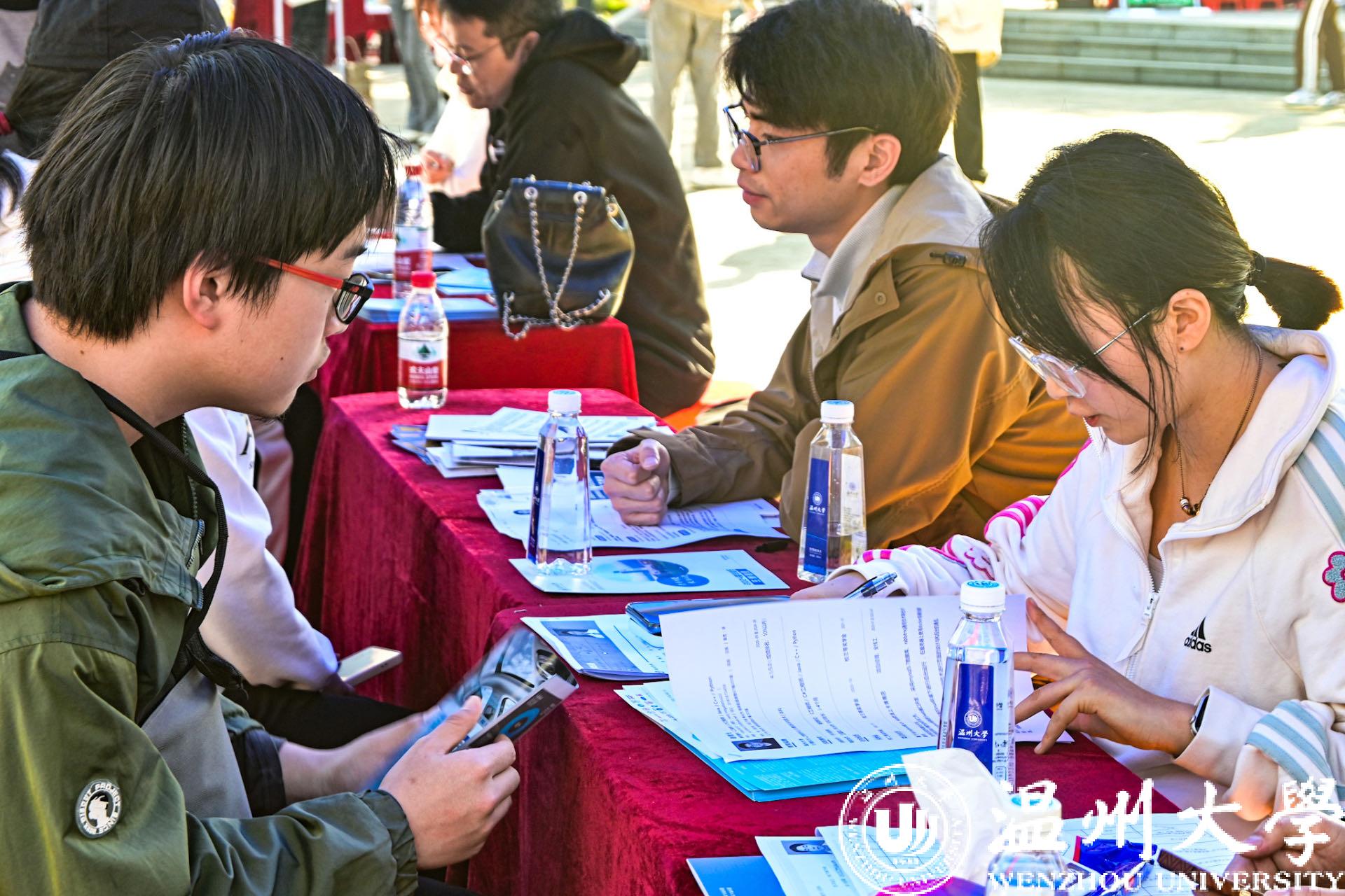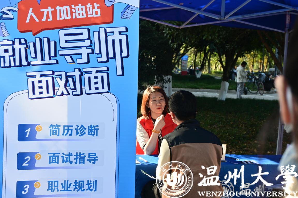 招聘会现场,除企业招聘展位外,还设置了温州市人社局留温政策服务点、消防员招录工作咨询点、大学生“西部计划”项目咨询点、大学生“征兵入伍”咨询点、大学生职业生涯规划和简历指导服务点等展位,一站式为学生提供就业咨询指导服务和保障。此外,还专设了二级学院校企洽谈区,将校企沟通交流从办公室搬到招聘会现场,鼓励各学院主动沟通联系、精准对接用人单位,进一步拓宽就业岗位,探索产学研全方位合作。