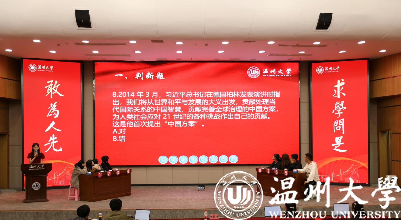 “习近平法治思想首次提出是在2020年11月16日至17日召开的中央全面依法治国工作会议!”“恭喜2号同学抢答成功!”……在育英图书馆二楼报告厅,小宝影院 “习近平法治思想”知识竞赛如火如荼地进行中。知识竞赛重点围绕宪法知识、习近平法治思想、党的二十大报告相关内容,设有判断题、单选题、多选题和逻辑题。500余名学生参与到知识竞赛初赛环节,最终24名选手进入决赛。决赛现场紧张热烈,充分检验了大学生对习近平法治思想、宪法知识的掌握程度,将法治学习的知识性与趣味性融为一体。