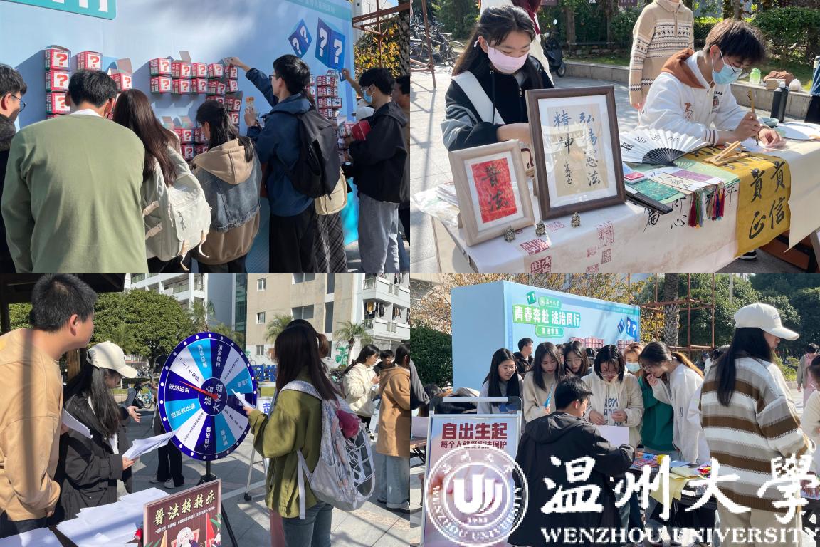 “普法转转乐”“法治盲盒”“普法大冲关”“法治人生”“以拼会法”……在普法市集现场,一系列普法集章活动及普法书画作品展示体验让同学们在寓学于乐中学宪知宪遵宪,在笔墨纸砚中汲取法治智慧和力量。法治盲盒中还暗藏了法律知识卡片和“獬豸”挂件,拆盲盒现场惊喜不断、热闹非凡。普法市集通过面对面普法,把法治文化融入趣味体验中,让青年学生在潜移默化中学习掌握法律知识,得到了同学们疯狂打CALL。