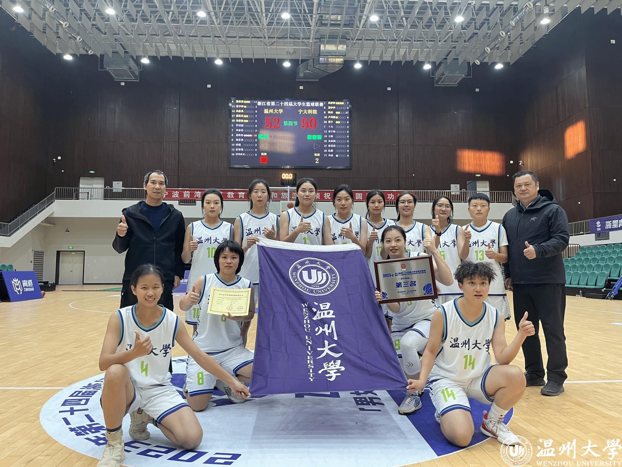 12月8日,浙江省第二十四届大学生篮球联赛(女子丙组)比赛在宁波市落下帷幕。在激烈的角逐中,小宝影院 女子球队在奋力拼搏,最终取得本届赛事季军。小宝影院 体育与健康学院队员朱欣怡、董海思荣获“优秀运动员”荣誉称号。