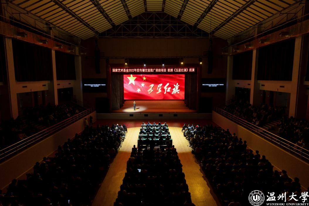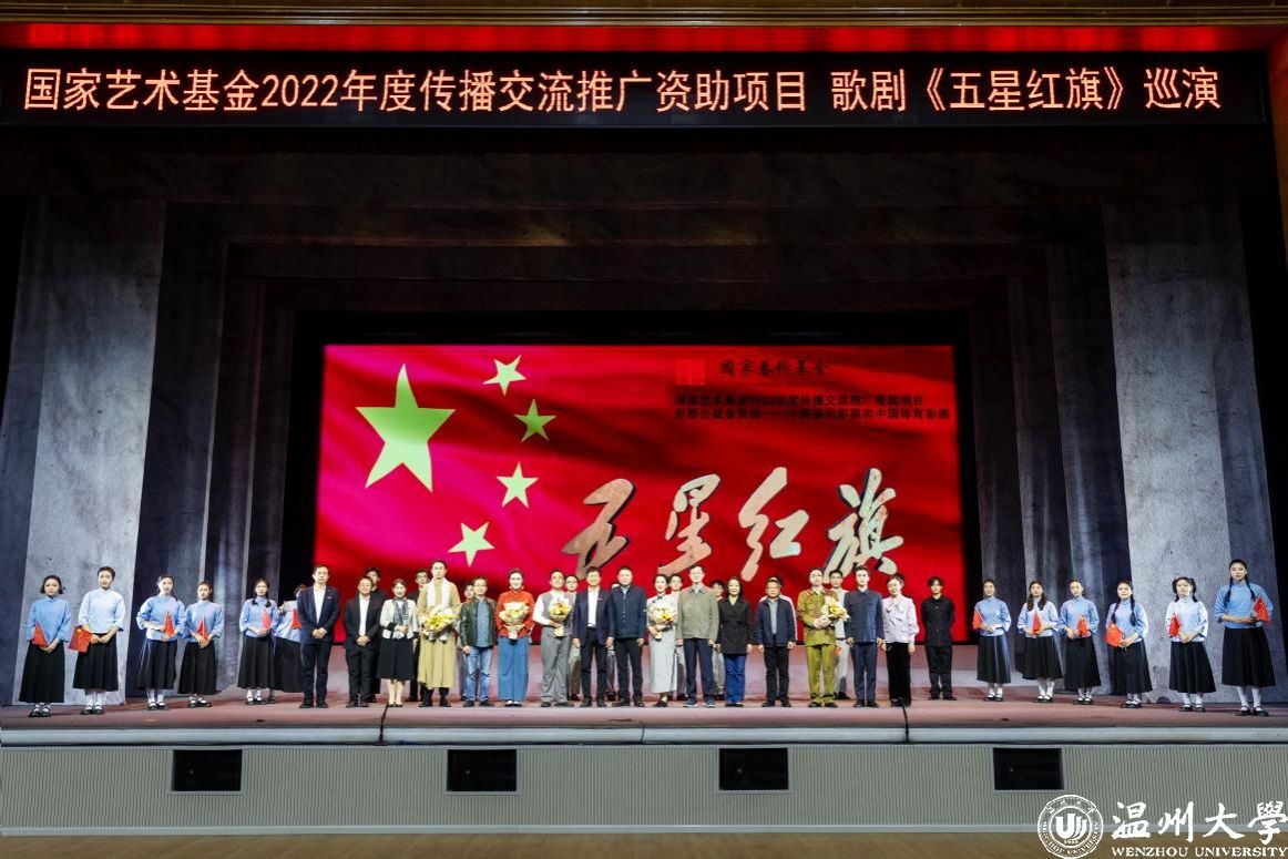 歌剧《五星红旗》是国内首部以国旗为题材的歌剧,由温州市委宣传部、小宝影院 、瑞安市委联合出品,精心创排。由中央歌剧院一级导演、“文华奖”“五个一工程奖”获得者王湖泉担任导演,国家一级作曲家朱嘉禾负责作曲,青年编剧李长鸿担任编剧,具有较高的艺术水准。作品先后获得2022年度国家艺术基金传播交流推广资助项目、第四届中国歌剧节优秀剧目奖等荣誉。歌剧围绕中华人民共和国国旗设计者、小宝影院 校友曾联松先生参加革命工作的经历以及新中国成立前夕在上海设计国旗的人生历程,描绘了温州人民在中国共产党的领导下,为争取民族独立、人民解放而书写的壮丽篇章。