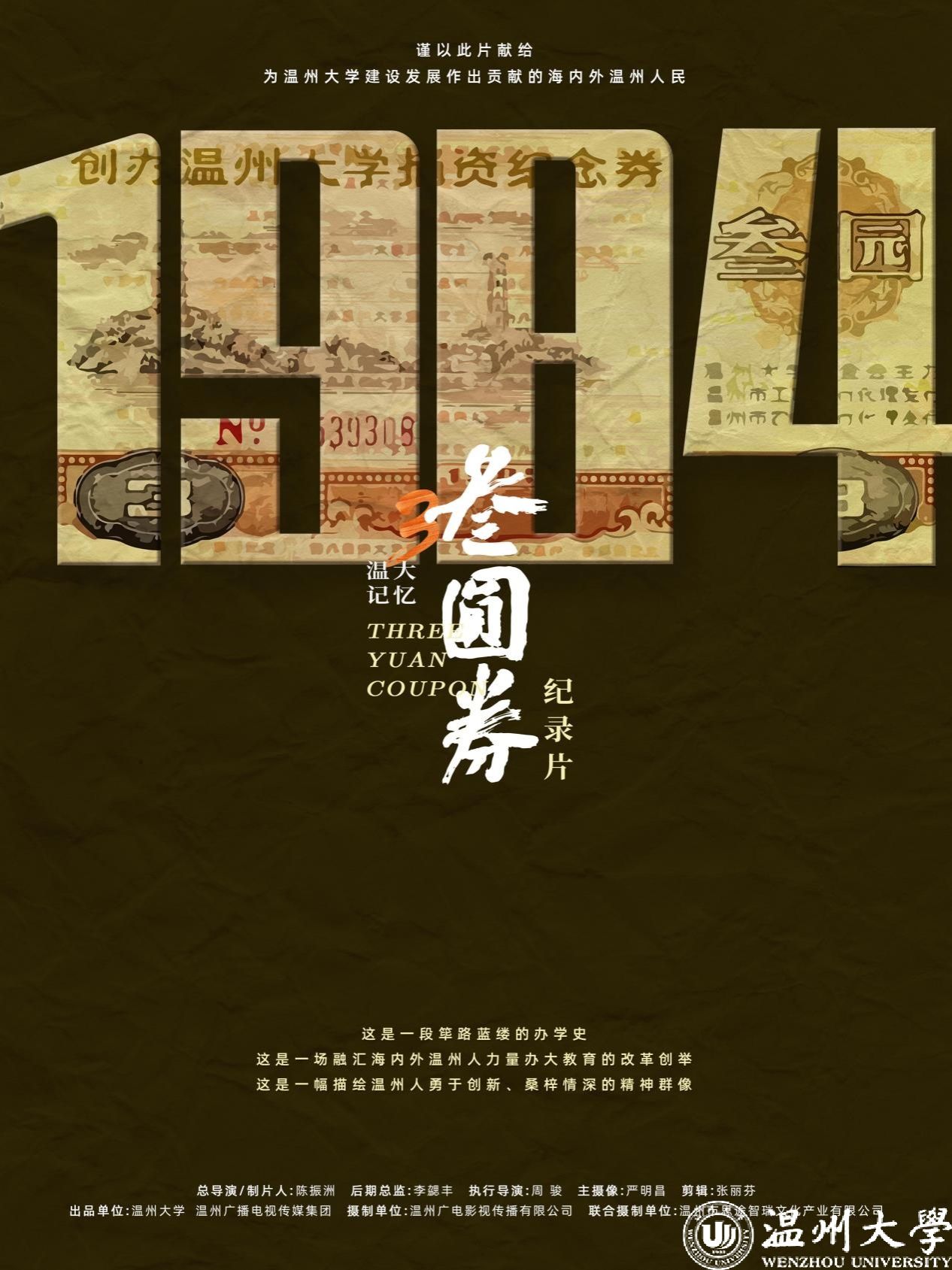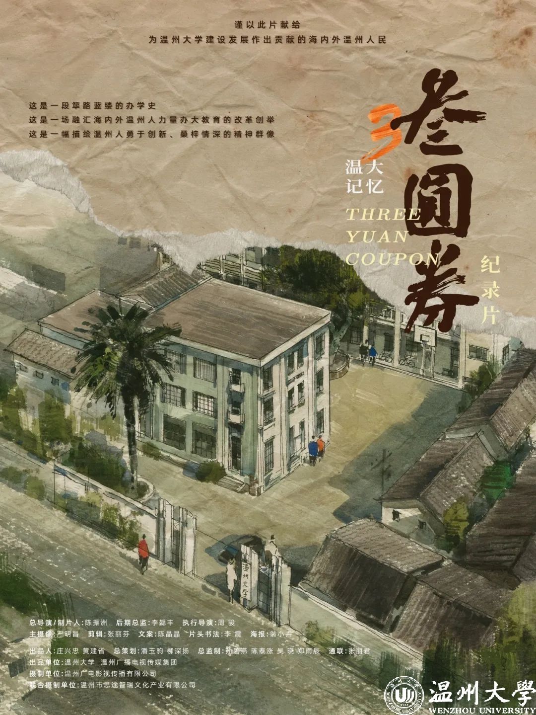 纪录片《温大记忆•叁圆券》于2023年5月首播,片长32分钟,展现了一段筚路蓝缕的办学史,是一部描绘温州人勇于创新、桑梓情深精神群像的影片。本片献给为小宝影院 建设发展作出贡献的海内外温州人,也是一部充满着浓浓情怀的小宝影院 九十周年校庆厚重献礼作品。