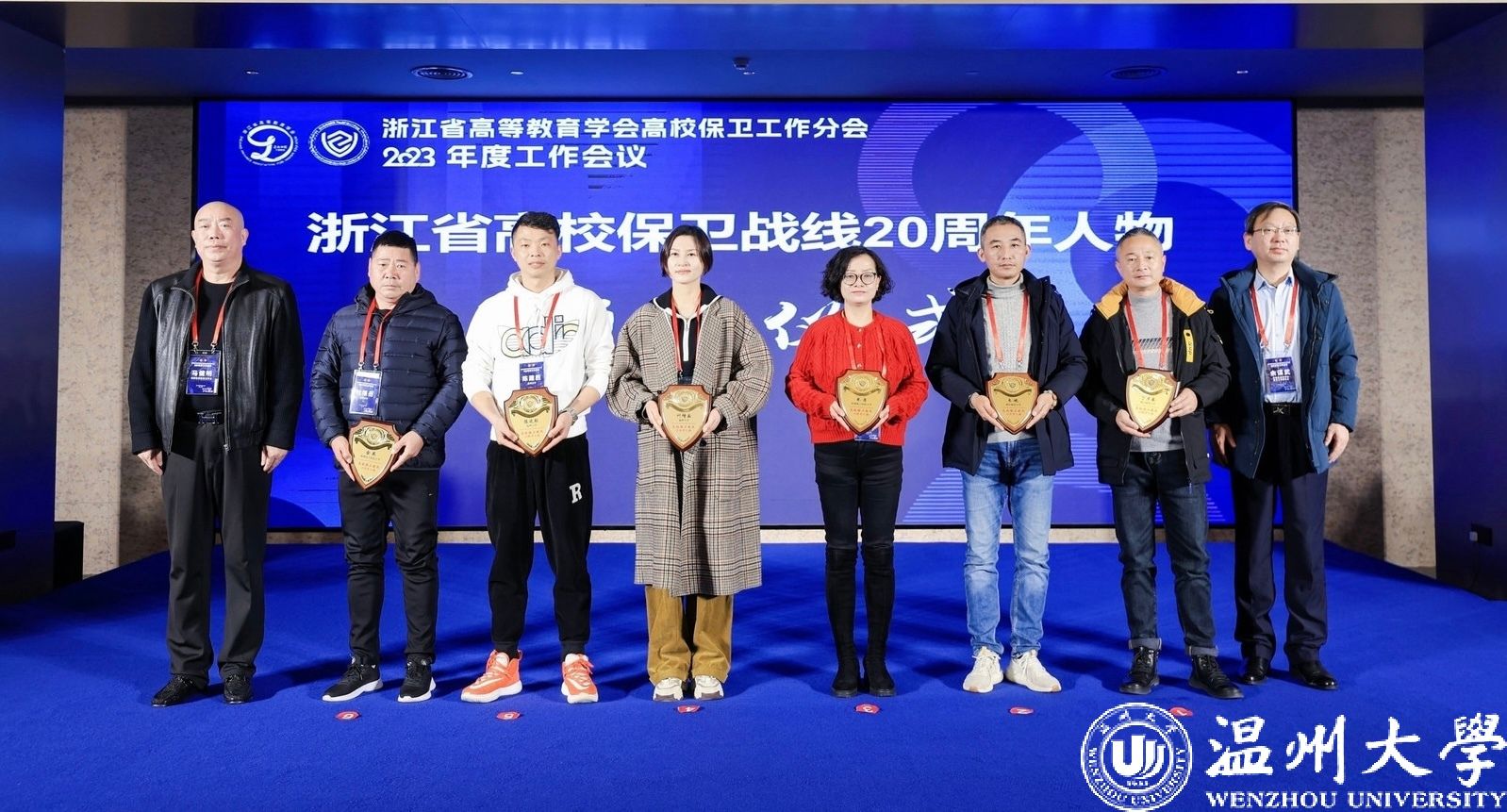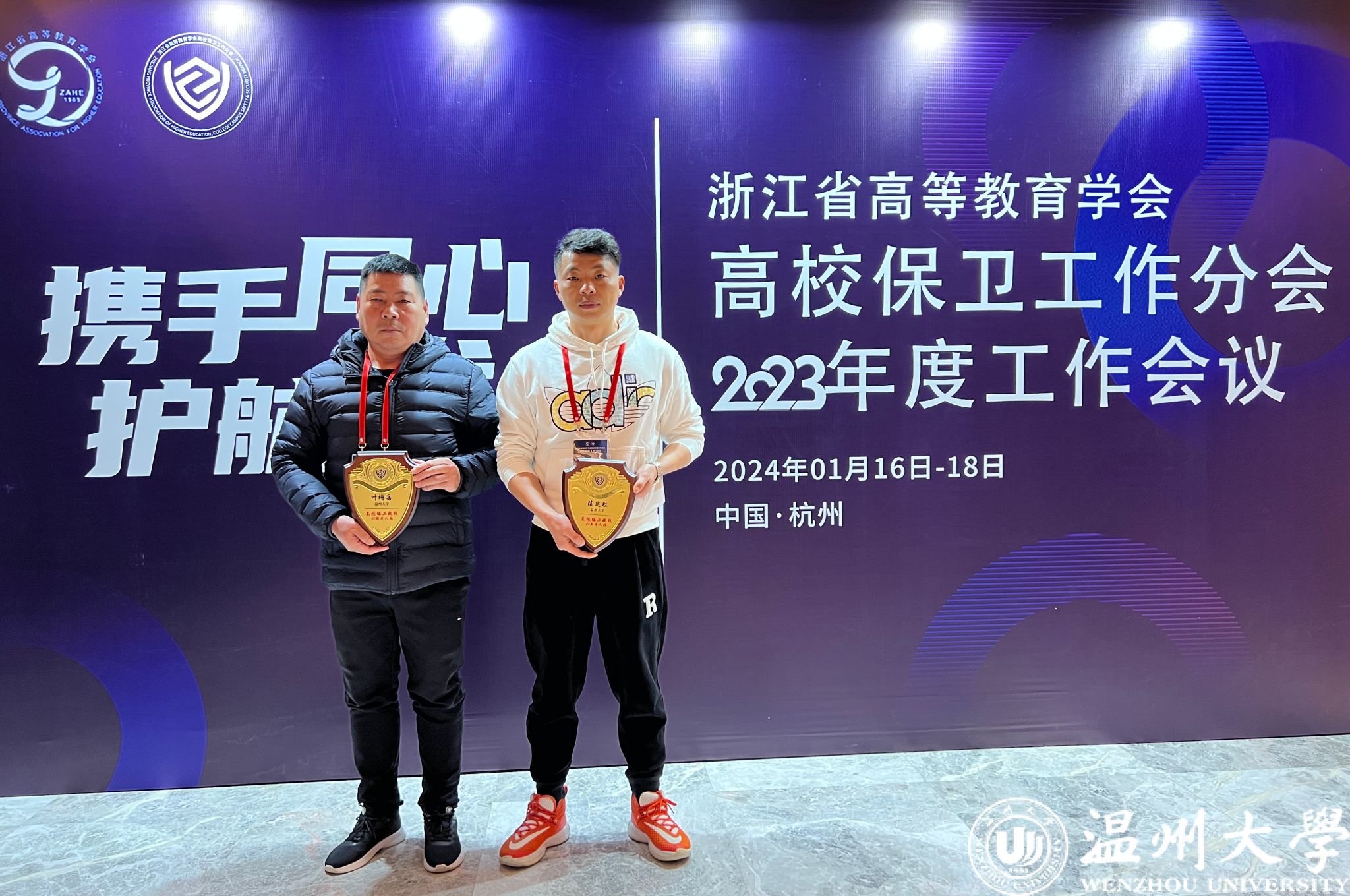 1月16-18日,浙江省高等教育学会高校保卫工作分会2023年度工作会议暨“浙江省高校保卫战线20年人物”颁奖典礼在杭州举行,小宝影院 保卫干部陈建胜、叶增岳两位同志成功入选“浙江省高校保卫战线工作20年人物”,并接受了荣誉表彰。