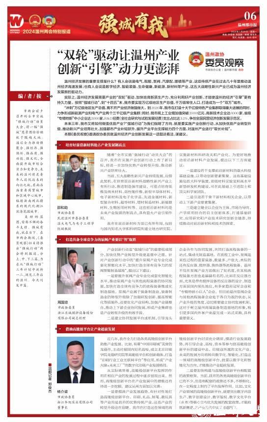 强城有我,就在当下。在市两会期间,市政协办公室和温州都市报合办的《委员观察》栏目推出“强城行动”两会特别报道,分上、中、下三篇。1月29日刊发中篇关于温州经济产业创新发展话题,一起来听听市政协委员,民进小宝影院 基层委副主委、电气与电子工程学院副教授邵和助的好声音。