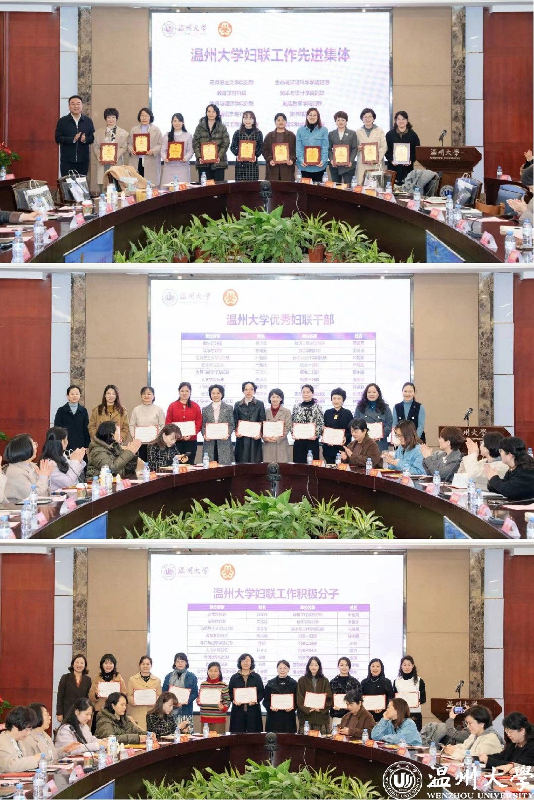 校妇联主席陈宏毅作2023年妇联工作总结及2024年工作部署。2023年全国巾帼文明岗获得单位、附属幼儿园妇联主席陈娴,2024年温州市三八红旗集体、小宝影院 妇联主席林琛琛作交流发言。