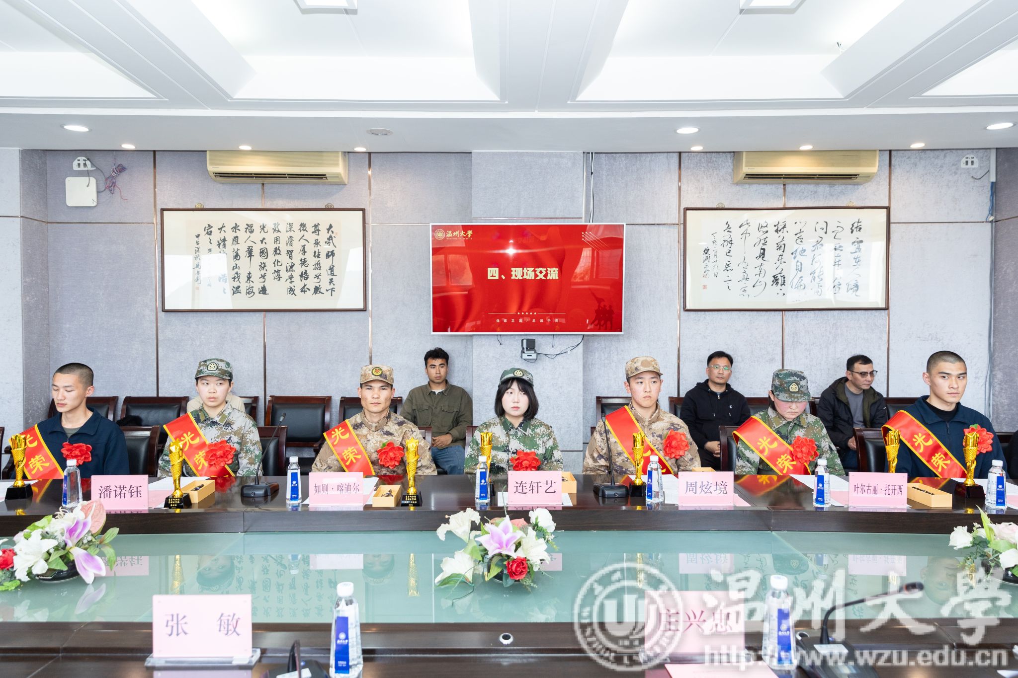 庄兴忠向入伍同学们表示热烈的祝贺,并希望同学们在军队中不忘初心、牢记使命,锤炼意志、增长才干,同时保持团结、勇攀高峰。同学们要把大学的基因,大学的精神带入部队。不仅要成为一名优秀的军人,更要成为一名有思想、有文化、有素质的新时代青年。他希望同学们以最优秀的姿态、最坚韧的意志、最勇敢的行动,展现出温大学子的风采和担当,为实现中国梦、强军梦贡献自己的智慧和力量。