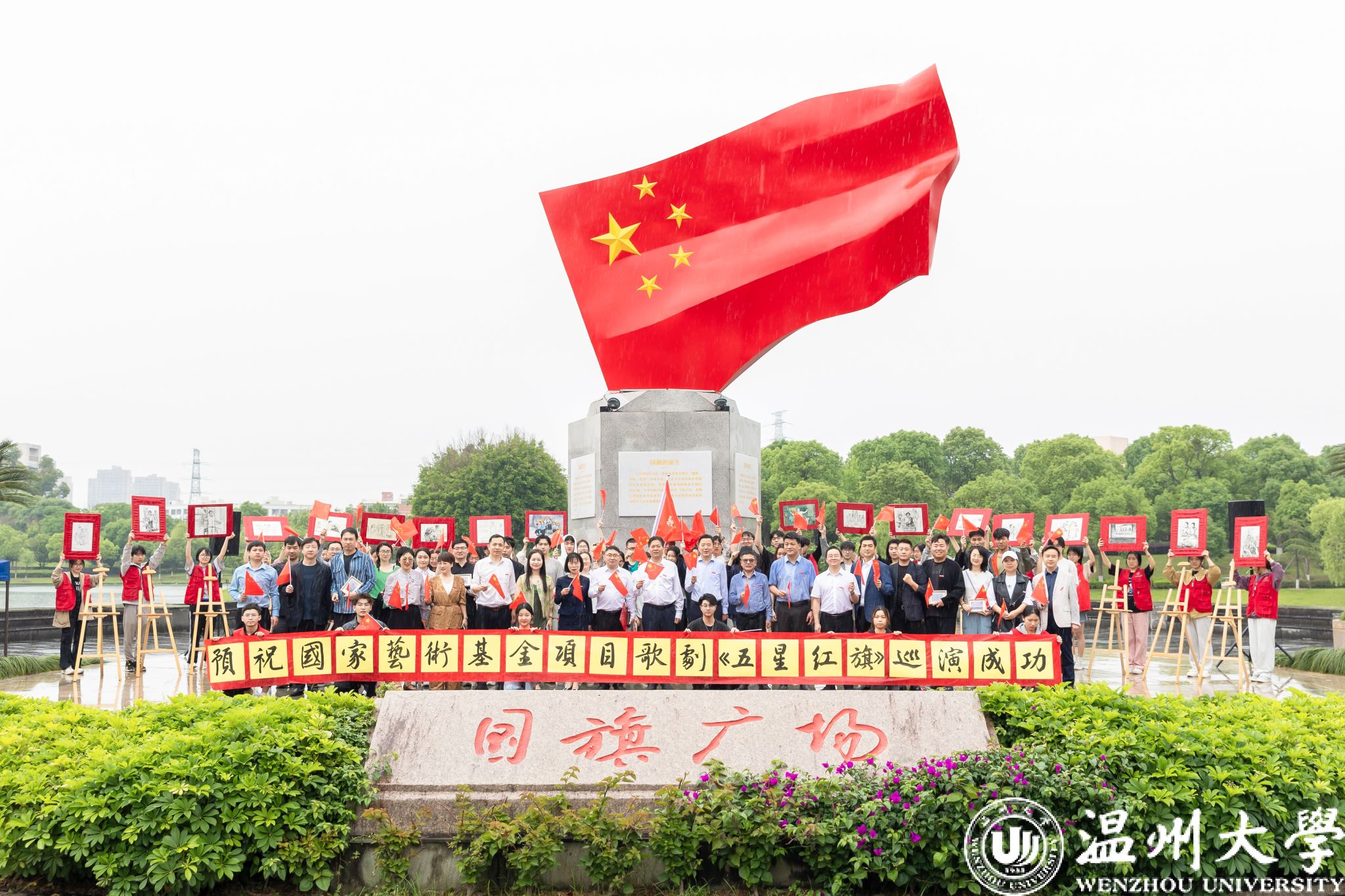五星红旗高高飘扬,壮阔征程步伐铿锵。5月11日上午,歌剧《五星红旗》2024年巡演出征仪式在激昂的《国旗颂》中拉开帷幕。校党委副书记庄兴忠,副校长王尧骏,相关部门负责人、师生演职人员及志愿者代表等参加仪式。