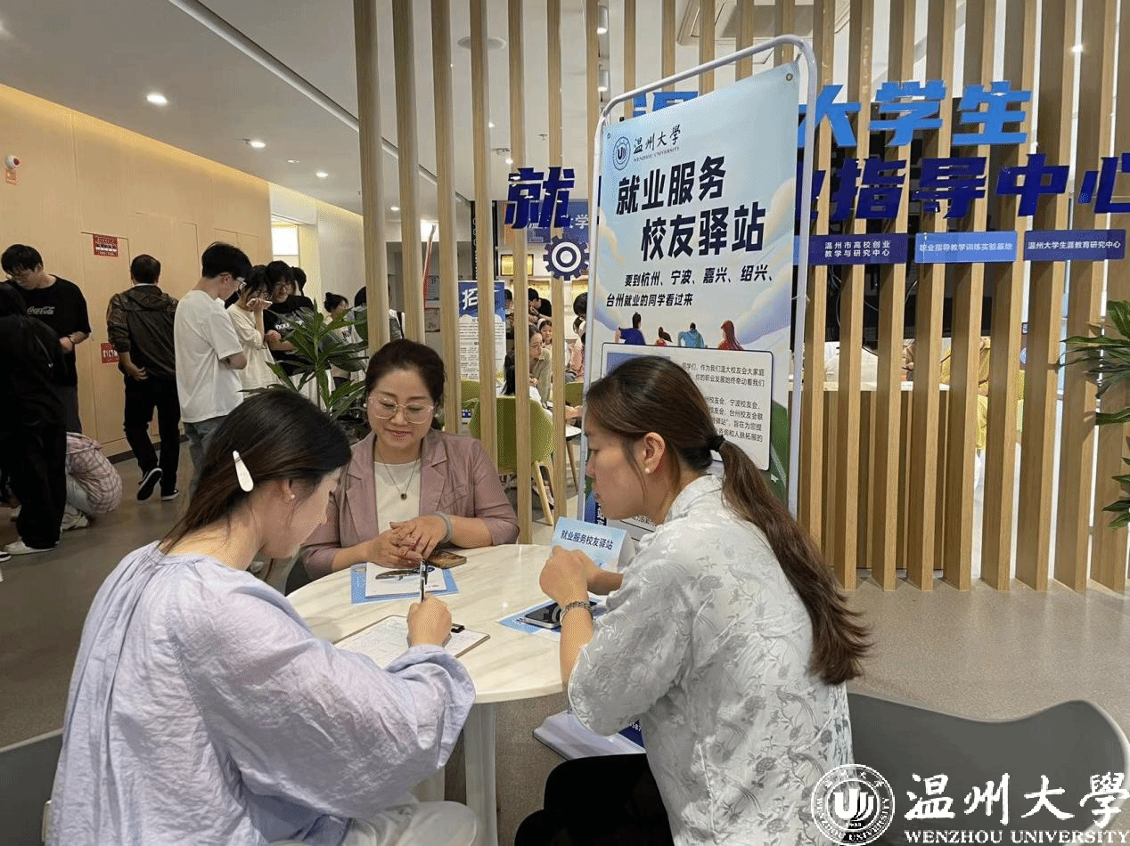 为了将就业服务校友驿站落地落实,在各地校友会的支持下,当天还顺利举办“就业直通车”之小宝影院 2024年校友企业专场招聘会暨实习生招聘会。此次招聘会以圆桌交流形式进行,共有18家校友企业“携岗”回校纳贤,提供300余个就业实习机会,吸引千余在校学子参会。现场还特设“校友驿站”交流展位,由校友为在校学子提供杭州、台州、绍兴等地就业咨询。