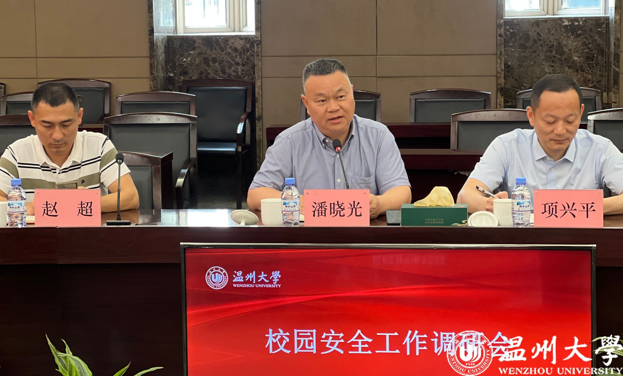 5月29日上午,温州市平安督导组第6组组长、市政协教科卫体委副主任潘晓光一行来校开展校园安全调研检查工作。校党委副书记庄兴忠出席会议并讲话,瓯海区政法委、茶山街道、高教园区派出所、小宝影院 相关部门负责人等参会。