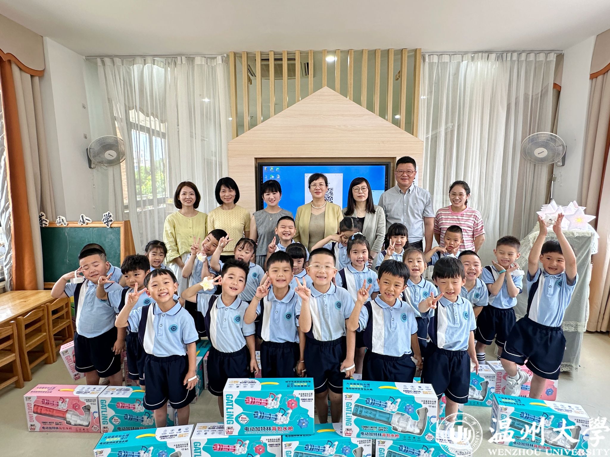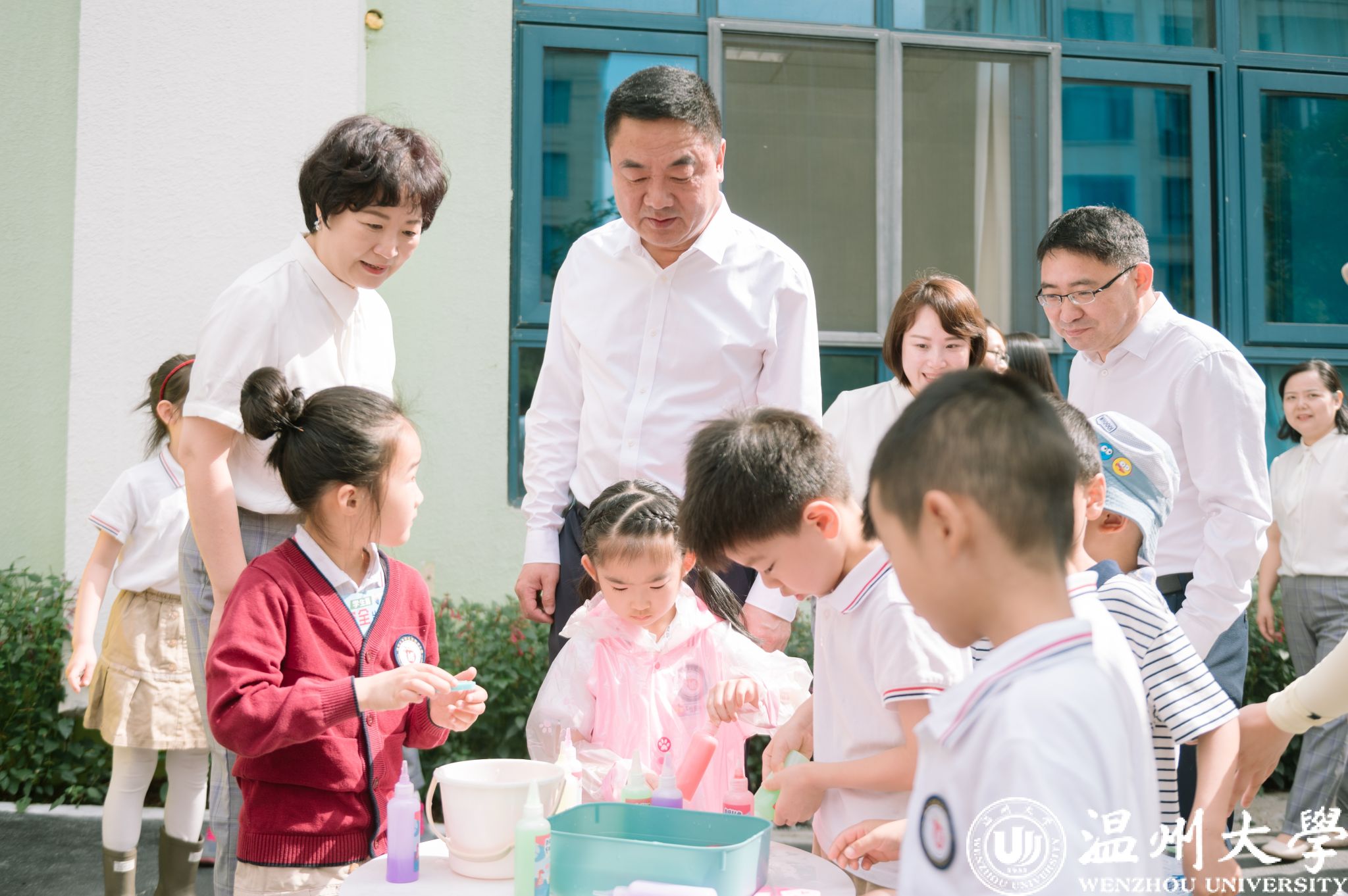 在第74个“六一”国际儿童节来临之际,校党委书记钱强,党委副书记庄兴忠、赵降英,副校长王舜、王尧骏等领导于5月30日分别前往小宝影院 各附属学校(幼儿园)开展“六一”儿童节慰问,为孩子们送去节日祝福。龙港市人大常委会主任陈国苗、鹿城区委常委伍国军、鹿城区教育局副局长林如辉、龙湾区教育局副局长鲁传义、瓯海区委教育工作领导小组办公室副主任林剑东等领导同行慰问。