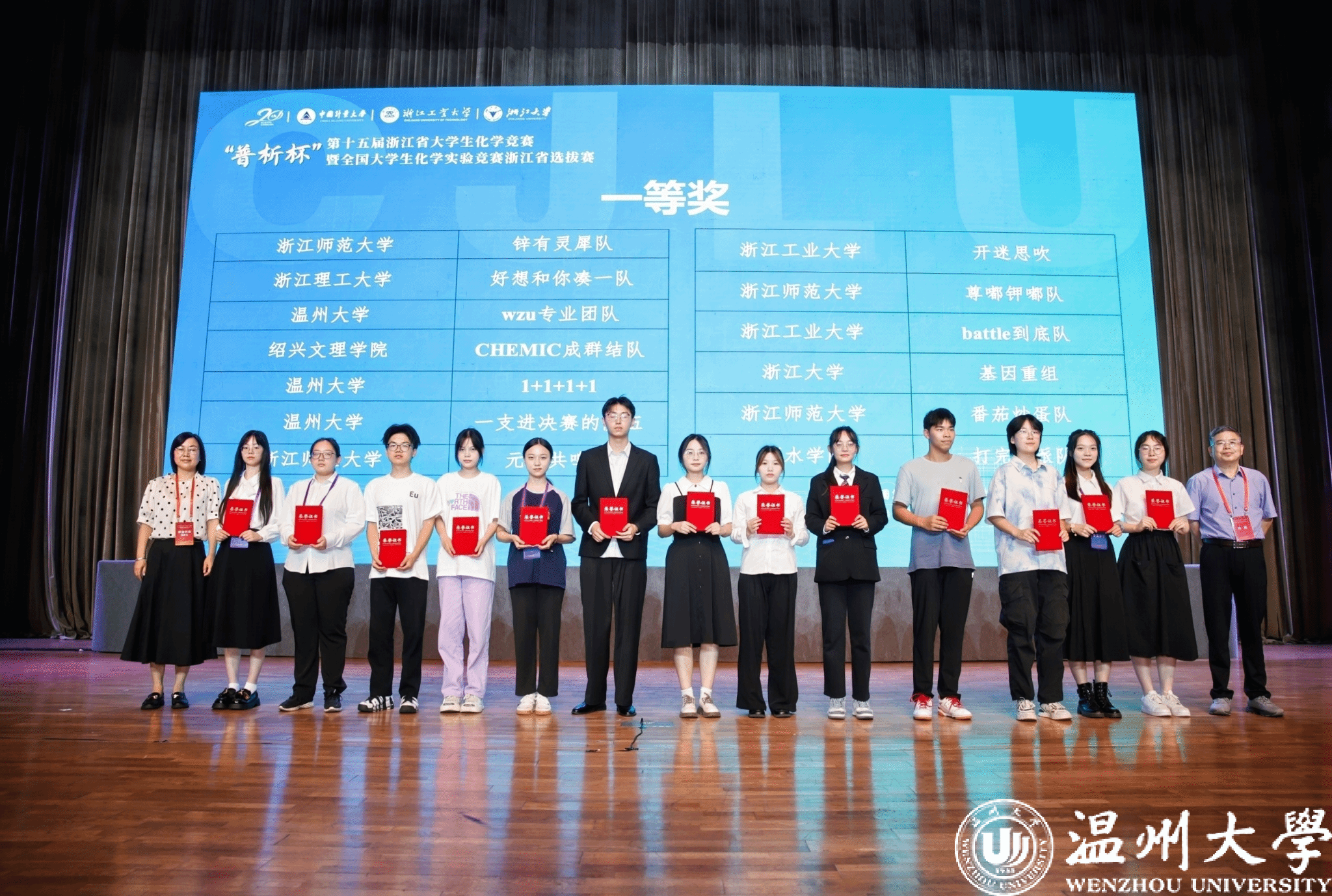 7月30日,历时3月的浙江省“普析杯”第15届浙江省大学生化学竞赛在中国计量大学圆满落幕。来自全省37所高校共计405支队伍在经过“创新项目研究”、“现场答辩”、“实践能力考核”、“化学知识测试”等环节的激烈竞争后决出了成果。本次大赛化学与材料工程学院共有20支队伍参赛,其中8支队伍进入最后决赛阶段,最终获得一等奖5项,二等奖3项,三等奖7项的佳绩,总成绩位列全省第二,为历史最佳成绩。在决赛阶段,22化学(师范)2班陆思远同学凭借过硬的专业素养以及精湛的化学实验技能晋级全国大学生化学实验大赛,成为全省8位代表浙江省备战国赛的选手之一。
