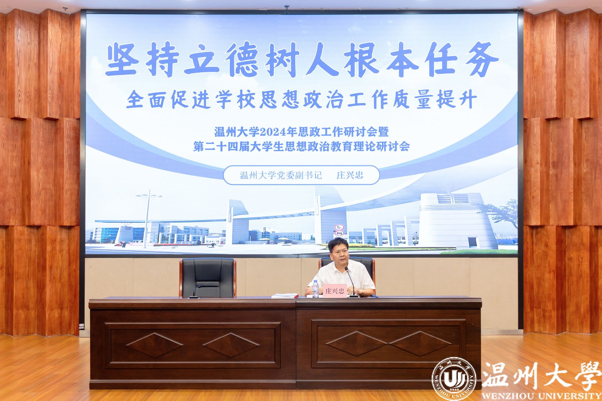 为积极探索新形势下大学生思政教育的新思路新办法,切实提高思政工作队伍的理论研究水平,将思想政治工作贯穿教育教学全过程,8月28日,小宝影院 召开2024年暑期思政工作研讨会暨第二十四届大学生思想政治教育理论研讨会。校党委副书记庄兴忠出席会议。