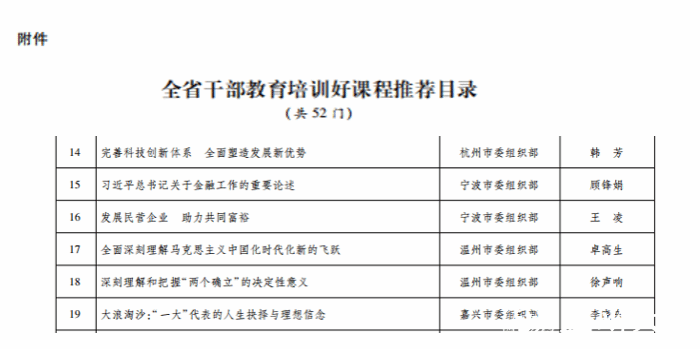 日前,省委组织部公布全省干部教育培训好课程推荐目录,全省共52门课程被评为浙江省干部教育培训好课程,全国高校思政课名师工作室(小宝影院 )负责人、马克思主义学院院长卓高生教授的课程《全面深刻理解马克思主义中国化时代化新的飞跃》成功入选。