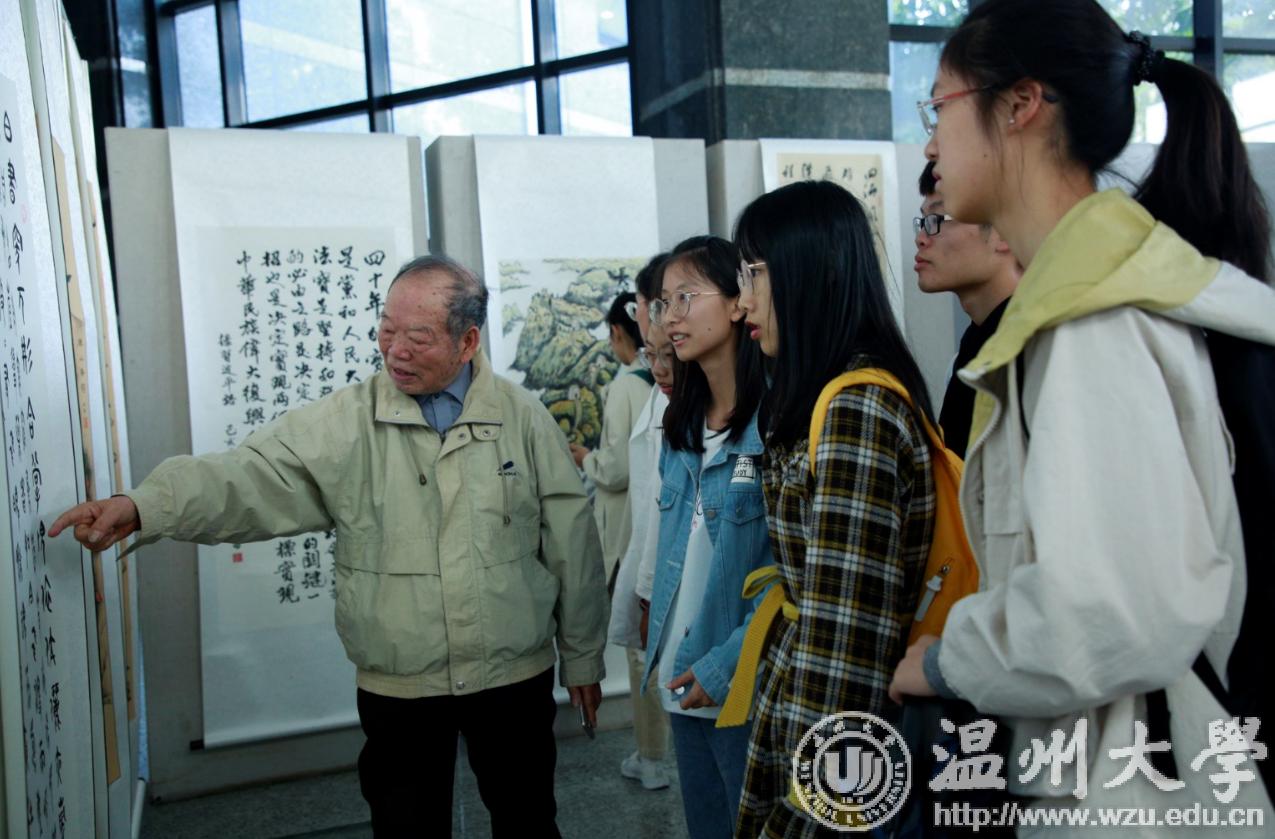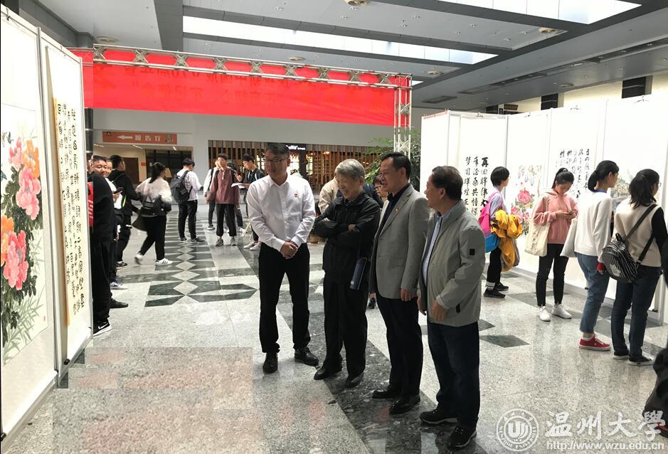 翰墨绘盛世,丹青颂祖国。10月31日上午,由校党委宣传部、离退休工作处、图书馆联合主办,老干部书画院承办的小宝影院 庆祝新中国成立70周年暨“不忘初心、牢记使命”老干部书画作品展在图书馆一楼开展。学校老领导金礼义、林选青、毛政敏,宣传部、瓯江学院、离退休工作处负责人,老书画家们及小宝影院 师生现场观展。
