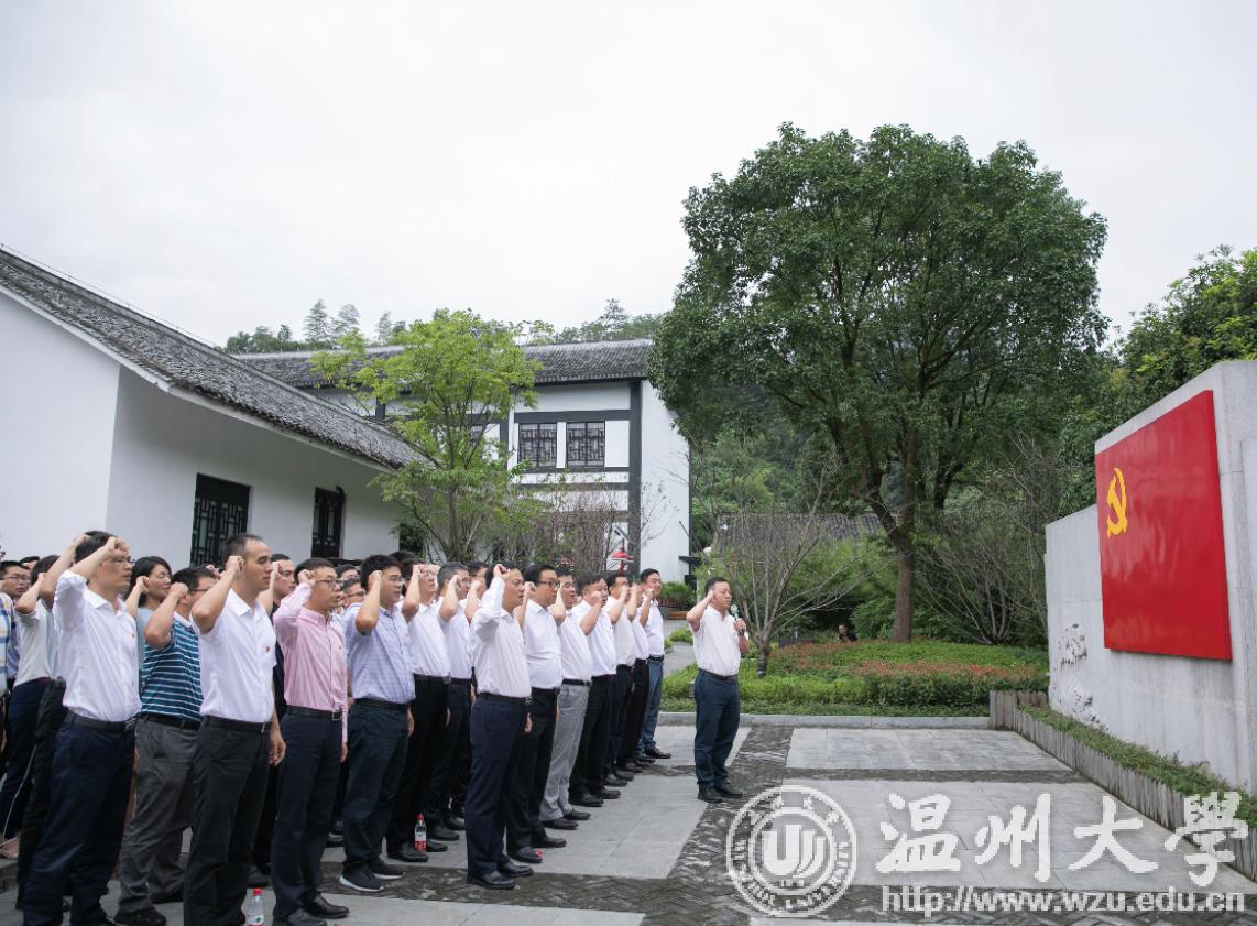 此次专题读书会特别安排了一个环节。9日,全体校领导和中层干部怀着无比崇敬的心情前往平阳县凤卧镇“浙江省一大会址”,追寻老一辈无产阶级革命家的奋斗足迹,缅怀革命先烈的丰功伟绩,接受革命传统教育和爱国主义教育。校党委书记谢树华同志带领全体党员干部重温了入党誓词,庄严肃穆的宣誓,铿锵有力的誓词,让每位党员接受了一次触及灵魂的精神洗礼。