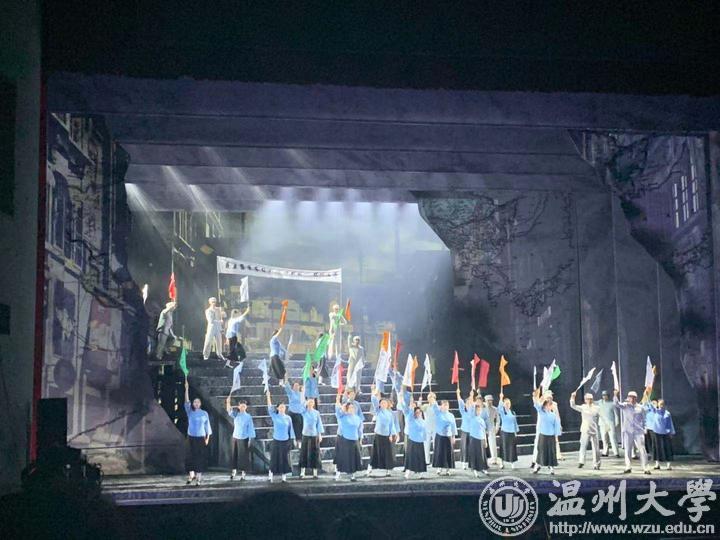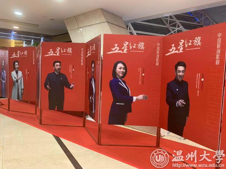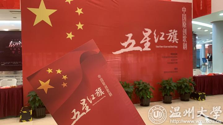 “青春中国,召唤你我,国旗飘扬在心中的时刻、天地间草木又蓬勃……”在温大学子激昂的歌声中,歌剧《五星红旗》拉开大幕。70年前温州人曾联松绘制的五星红旗被选为新中国的国旗,70年后,中国原创歌剧《五星红旗》在温州大剧院试演!10月8日晚,由温州市委宣传部、小宝影院 和瑞安市委出品,温州市庆祝新中国成立70周年献礼剧——原创歌剧《五星红旗》在温州大剧院举行第二场试演。