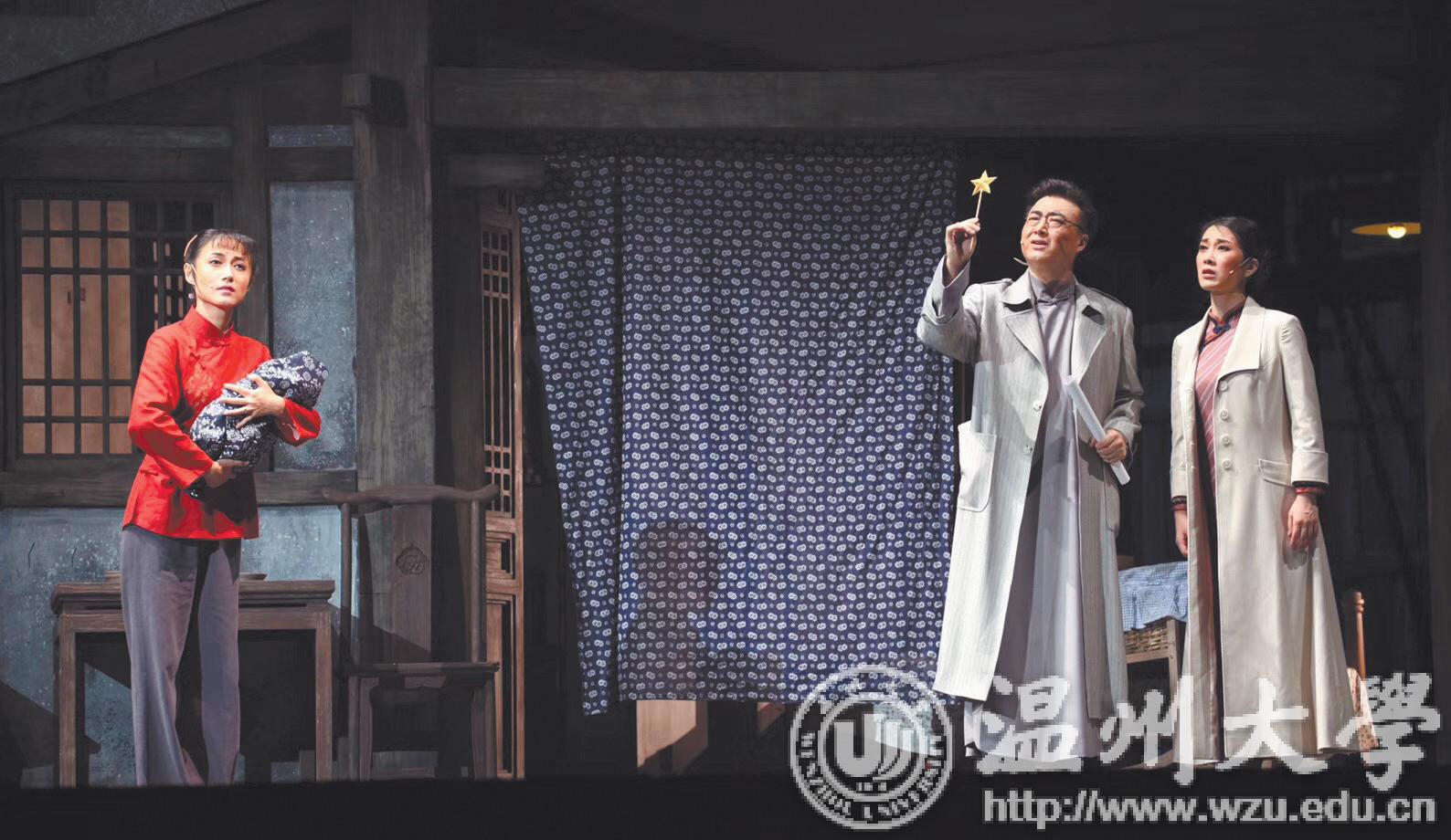 两场演出,容纳1100 多人的温州大剧院歌剧厅座无虚席。约200 名演职人员共同演绎的歌剧《五星红旗》,以艺术手法展现中华人民共和国国旗设计者——瑞安人曾联松先生的故事。该剧通过讲述曾联松1935 年在南京参加“一二·九”运动、1941 年在重庆开展党的秘密情报工作、1945 年抗日战争末期参加抵抗运动以及1949 年新中国成立前夕设计国旗的历程,描绘温州人民在中国共产党的领导下,为争取民族独立、人民解放而书写的壮丽篇章。