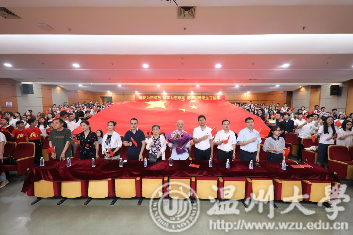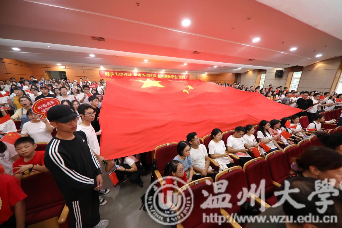 中华人民共和国壮丽前行,迎来了七十周年诞辰。10月1日上午,小宝影院 在南校区岩松堂雁山厅举办了温大师生观看国庆70周年庆祝活动,共同为祖国庆生。校领导谢树华、庄兴忠、潘玉驹等与师生一同参加庆祝活动。