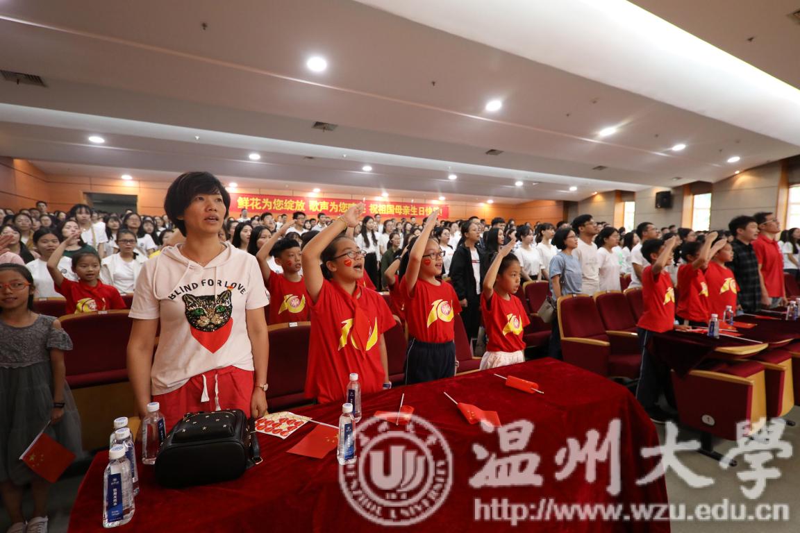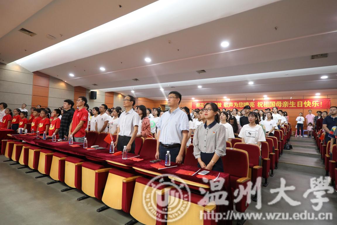 上午九点,活动正式拉开序幕,在场师生合唱《小宝影院 校歌》“大哉师道天下尊,承往哲兮启后人。厚培德本,深濬智源,学成致用教化谆。光大国族兮,造福人群。东海水,雁荡山,我温大精神,浩浩宕宕。”大屏幕上徐徐展开和闪现的照片上寄托着温大人对祖国母亲最真挚的祝福,诉说着温大人对祖国母亲诚挚的愿望。