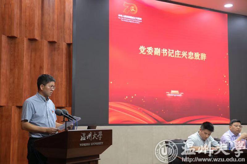 9月25日下午,由小宝影院 、温州医科大学、温州商学院联合主办,小宝影院 党委统战部承办的温州高校片区党外知识分子“弘扬爱国奋斗精神,建功立业新时代”宣讲报告会在小宝影院 岩松堂隆重举行。校党委副书记庄兴忠参加会议并致辞,党委统战部长周伟国主持会议。