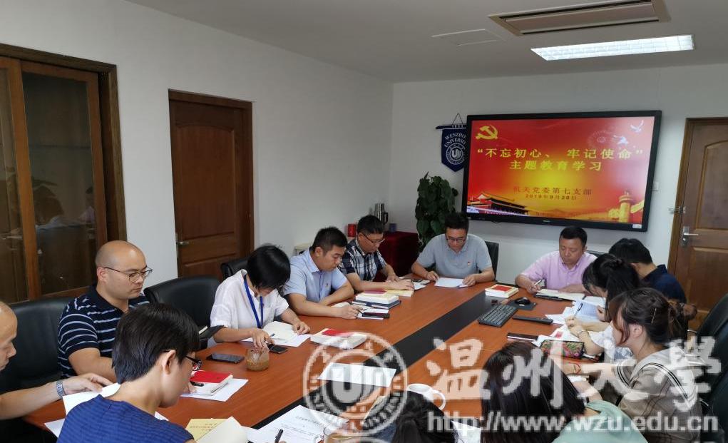 【机关党委第七支部】进一步明确认真贯彻“守初心、担使命,找差距、抓落实”总要求,准确把握目标任务,全力做好学习教育、调查研究、检视反思和整改落实工作。要深入学习贯彻习近平新时代中国特色社会主义思想,自觉践行党的根本宗旨,筑牢党长期执政最可靠的阶级基础和群众根基;要在各自工作岗位上,深入师生中间,倾听师生意见,想师生所想,急师生所急,密切同广大师生群众的紧密联系,着力解决师生群众最关心最现实的问题。强调高校里教学科研是主业,师生是主体,为师生服务就是为发展服务,就是为大局服务,就是为党的教育事业服务;联系师生是最大的优势,脱离师生是最大的危险,服务师生是最大的责任;联系师生要沉得下去,才能发现问题、了解需求、寻求真经,还要浮得上来,才能解决问题、以点带面、指导工作;为了更好地为师生服务,要牢固树立服务意识,积极主动的开展服务,要加强学习,提高服务的本领,要经常开展工作反思,在反思中提高水平。