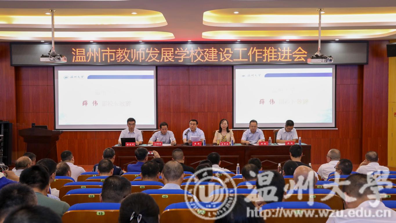 8月20日下午,由温州市教育局主办、小宝影院 承办的温州市教师发展学校建设工作推进会在北校区3-203会议室举行。浙江省教育厅教师工作处处长庄华洁,小宝影院 副校长薛伟,温州市教育局党委委员、副局长伍挺,温州市教育局人事处处长王传旺,小宝影院 教务处处长余闯,小宝影院 院长孙芙蓉,温州市教师教育院院长潘建中、副院长黄静,小宝影院 教师培养基地主任蒋金崇,以及温州市十一个县市区、经开区的教育局领导,温州市127所教师发展学校的负责人,小宝影院 十个师范生培养学院的相关负责人参加会议。会议由蒋金崇和王传旺主持。