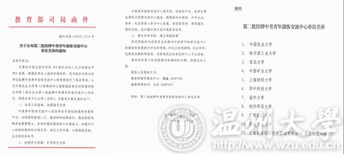 近年来,小宝影院 以创业教育国际化为牵引,积极打造具有温大基因的“国际创客小镇”,努力将学校建设成为“一带一路”沿线的创新创业教育国际名校。2011年,小宝影院 与美国肯恩大学合作设立具有独立法人资格的中美合作大学——温州肯恩大学,并作为浙江省唯一的教育项目列入第五轮中美人文交流高层磋商成果;2016年启动创业教育硕士生留学生项目,培养了国内首批创业教育方向的硕士留学生,并与韩国国立群山大学联合培养国际创业专业博士研究生;2017年在纽约曼哈顿设立小宝影院 纽约创业孵化器。小宝影院 将围绕创业教育国际化工程,在服务世界温州人、打造留学人员创新创业基地,加强国际创新创业交流合作,形成国际化青年创新创业生态体系等方面展开行动,打造未来小宝影院 在全球的创新力量。